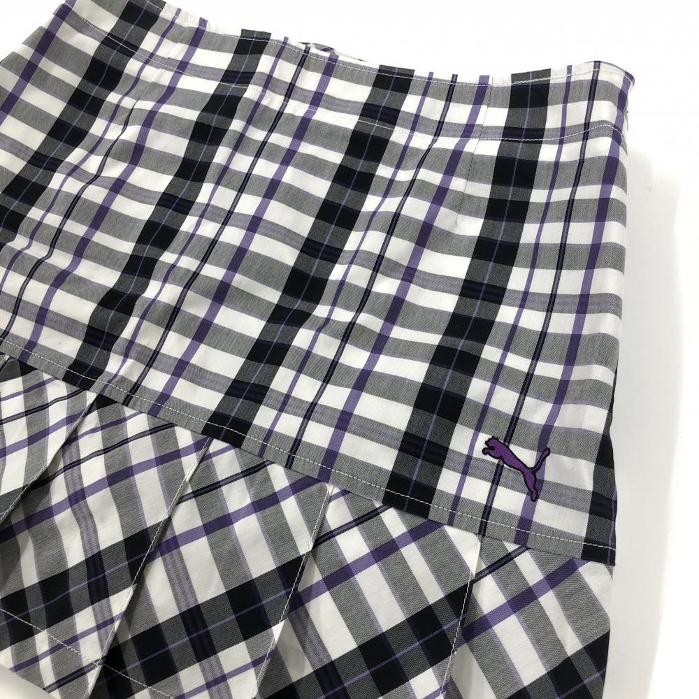 【超美品】プーマ スカート 白×パープル チェック ストレッチ インナーパンツ付き レディース M ゴルフウェア PUMA