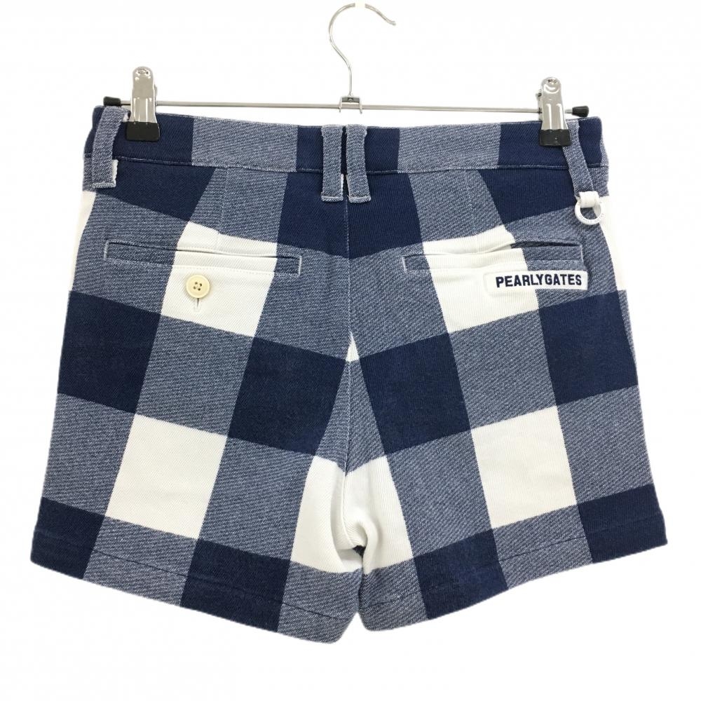 パーリーゲイツ ショートパンツ 白×ネイビー チェック ストレッチ レディース 0(S) ゴルフウェア PEARLY GATES