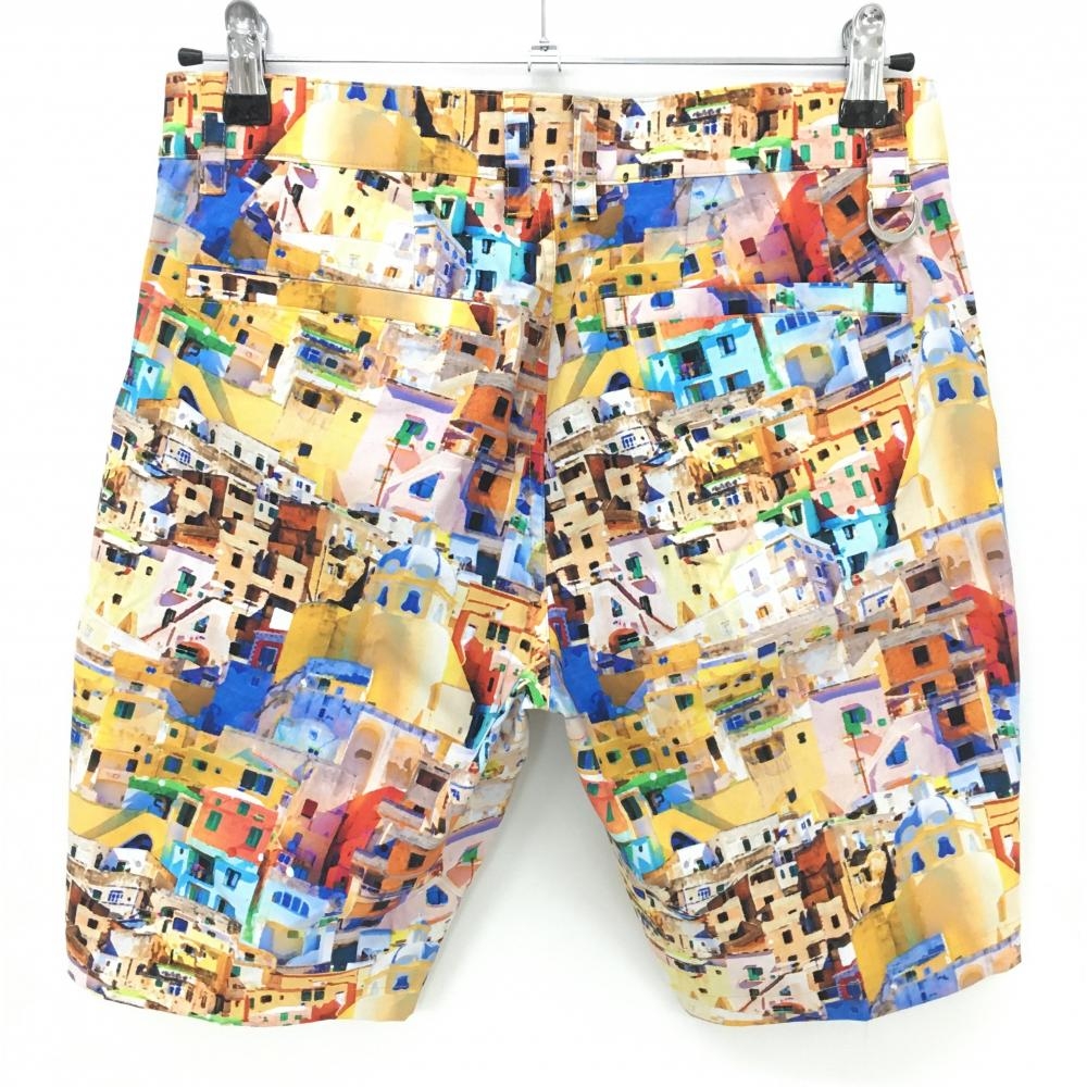 【美品】カッパ ハーフパンツ マルチカラー 建物柄 メンズ S ゴルフウェア Kappa