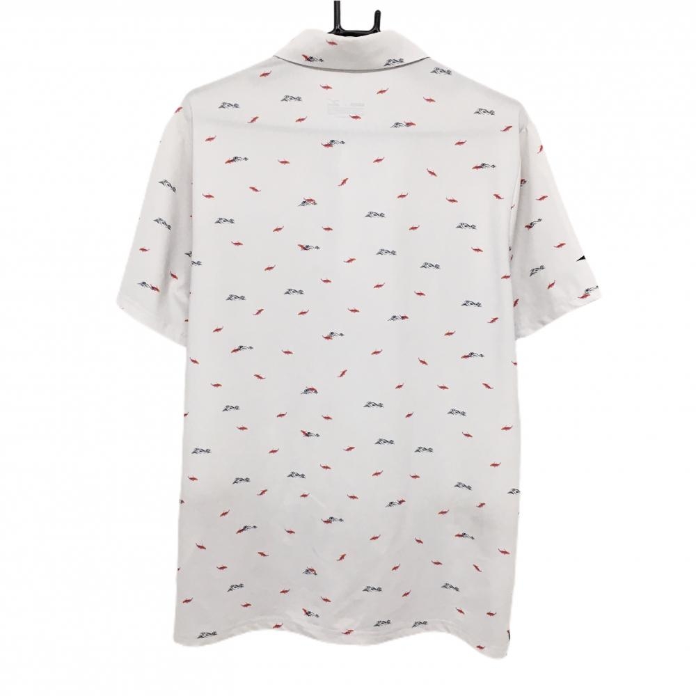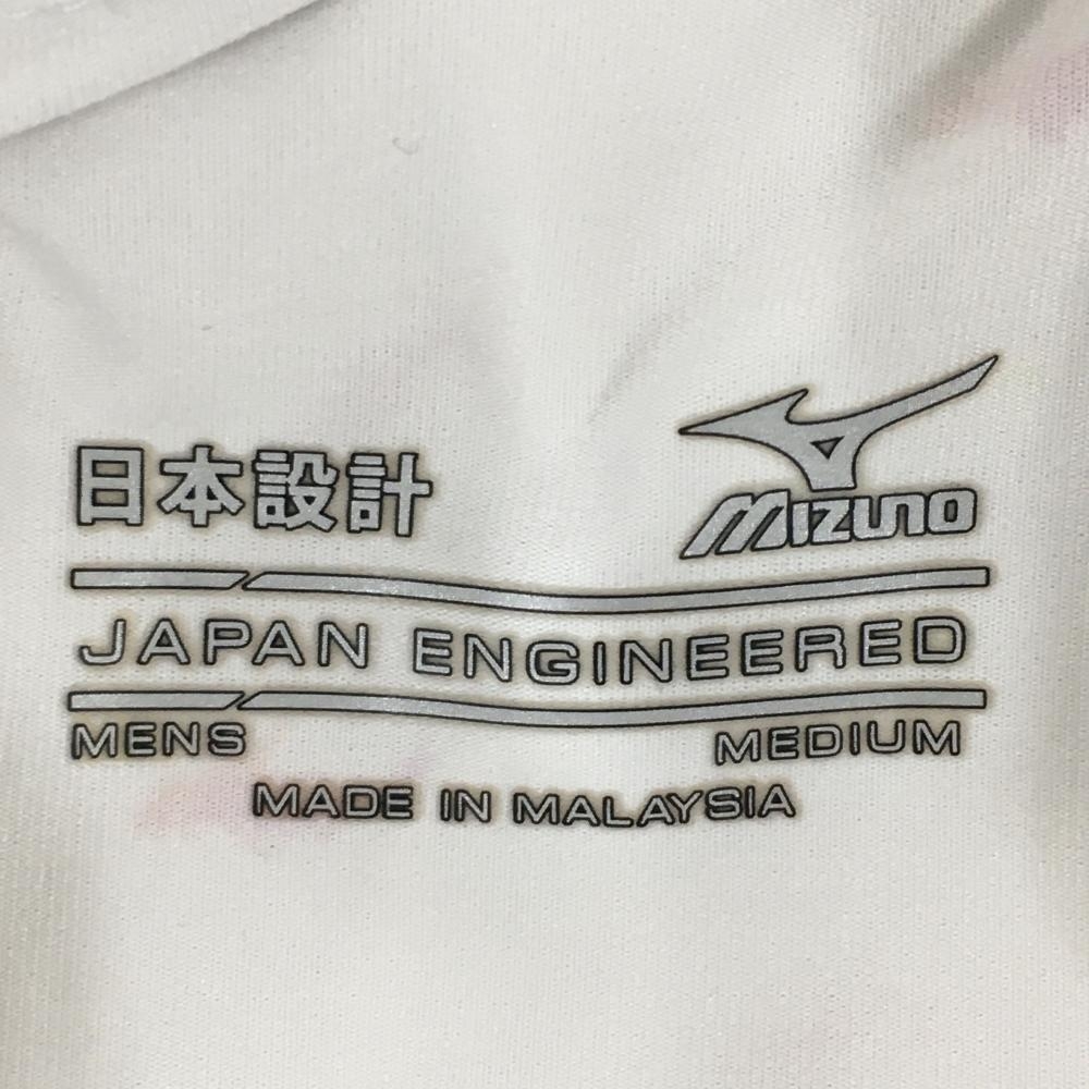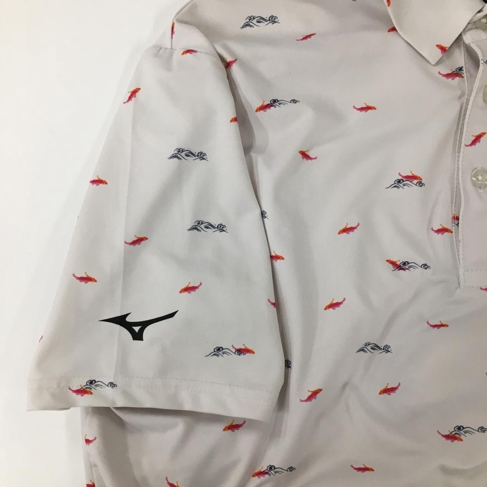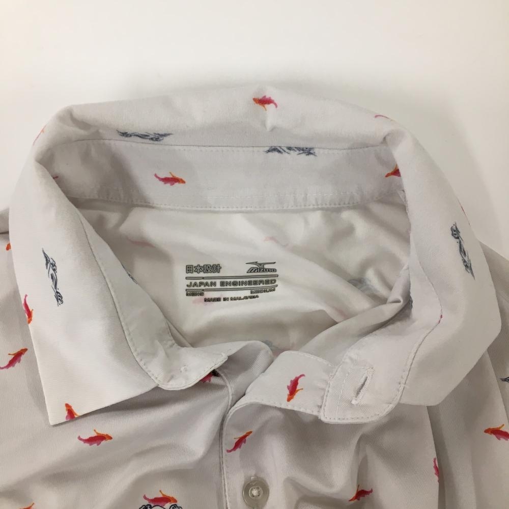 【美品】ミズノ 半袖ポロシャツ 白×レッド 金魚総柄 日本設計 メンズ MEDIUM ゴルフウェア MIZUNO