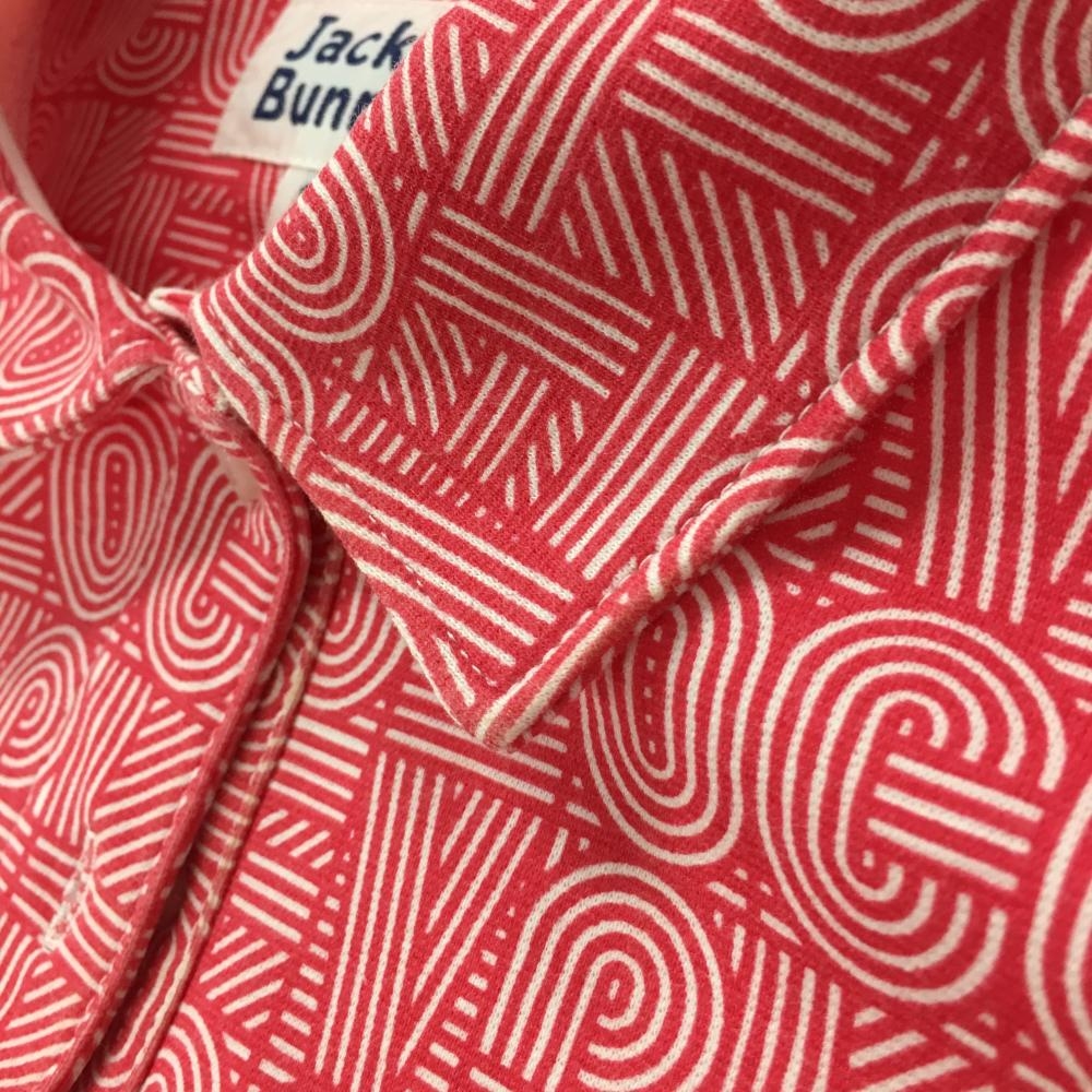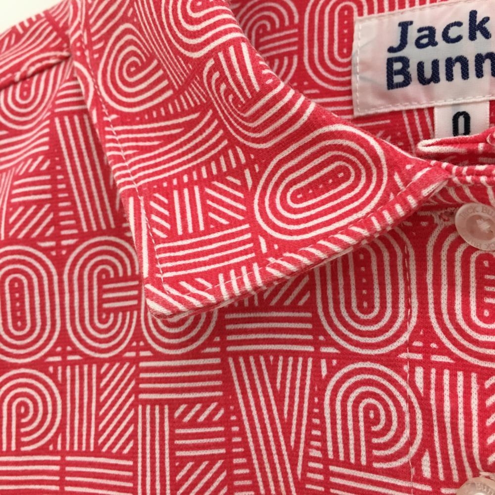 【美品】ジャックバニー 半袖ポロシャツ ピンク×白 総柄 レディース 0(S) ゴルフウェア Jack Bunny