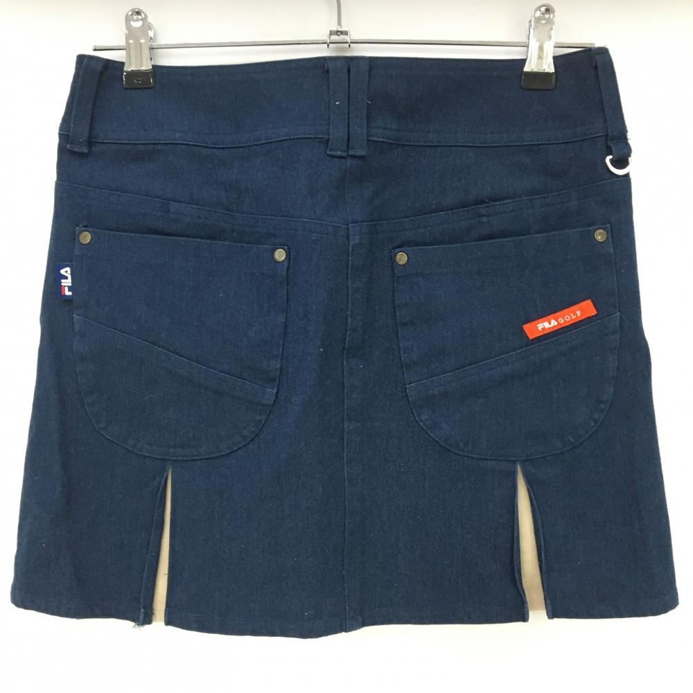 【美品】フィラゴルフ スカート ネイビー デニム調 ティー装着可 ストレッチ レディース M ゴルフウェア FILA GOLF