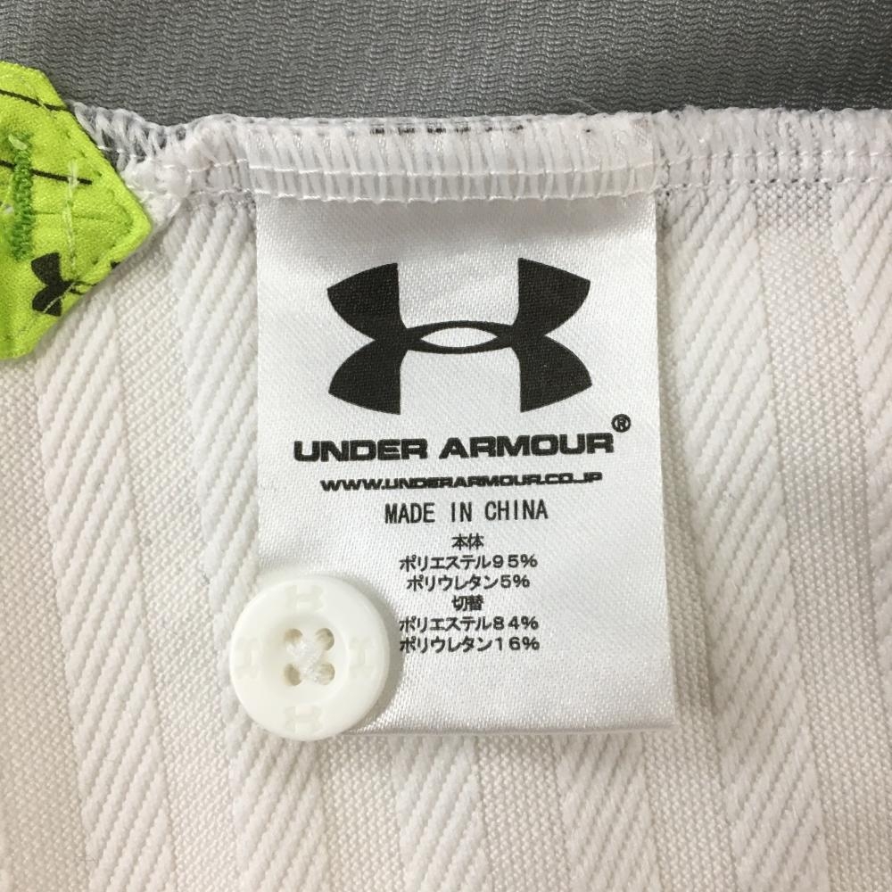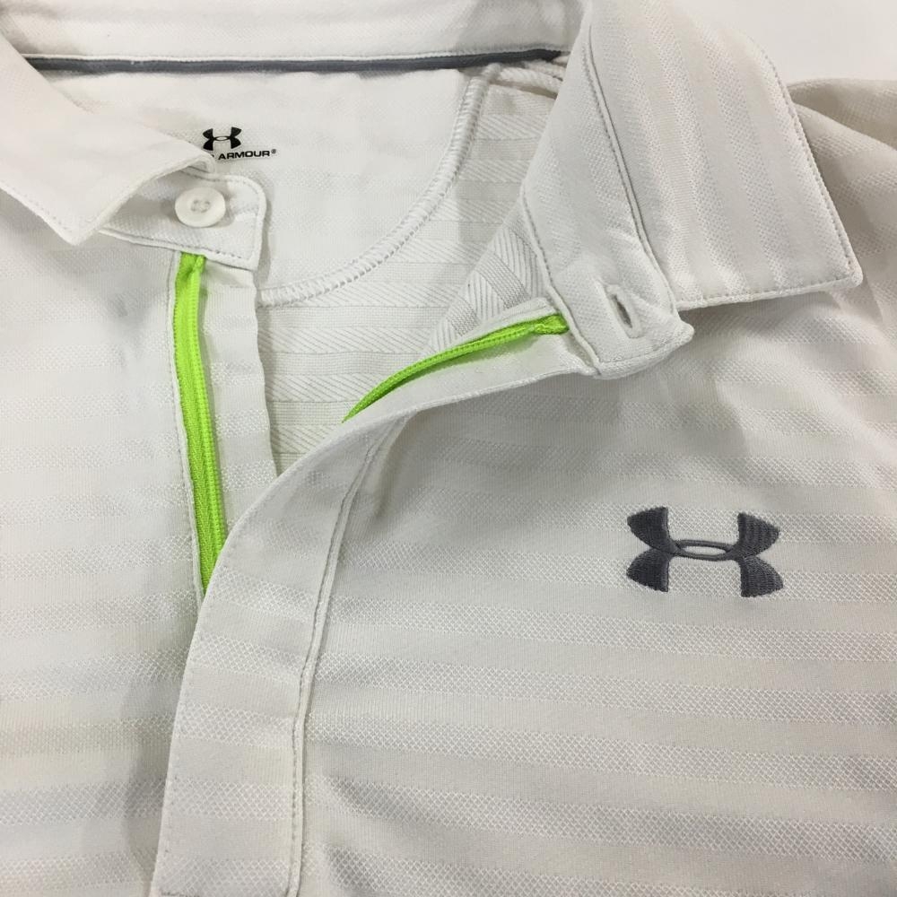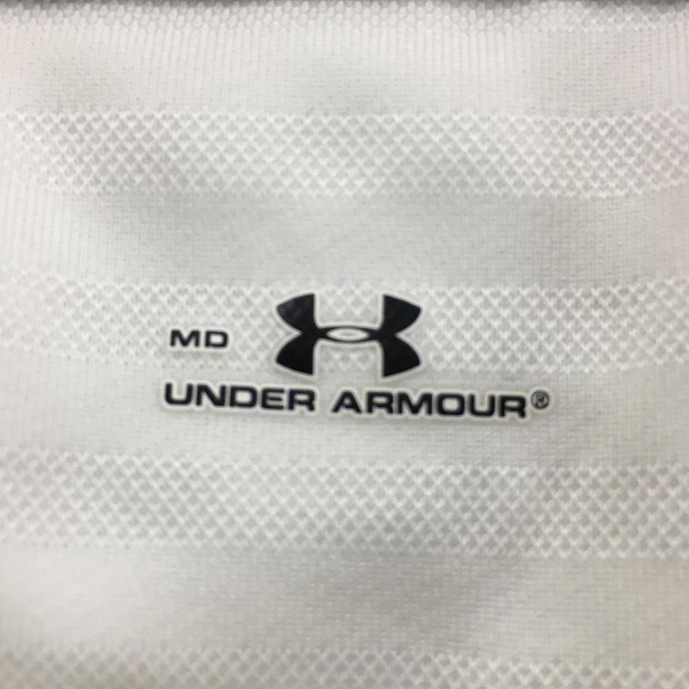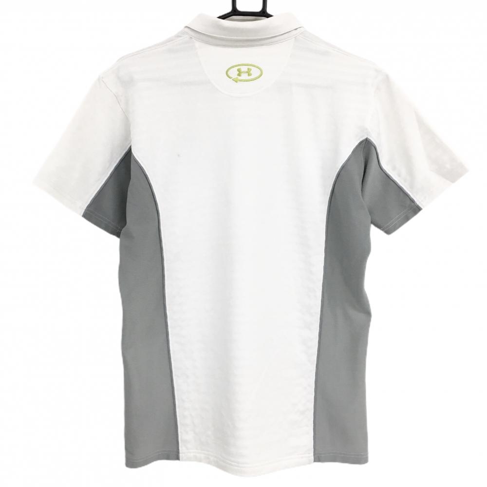 アンダーアーマー 半袖ポロシャツ 白×グレー ボーダー地模様 サイド切替 メンズ MD ゴルフウェア UNDER ARMOUR