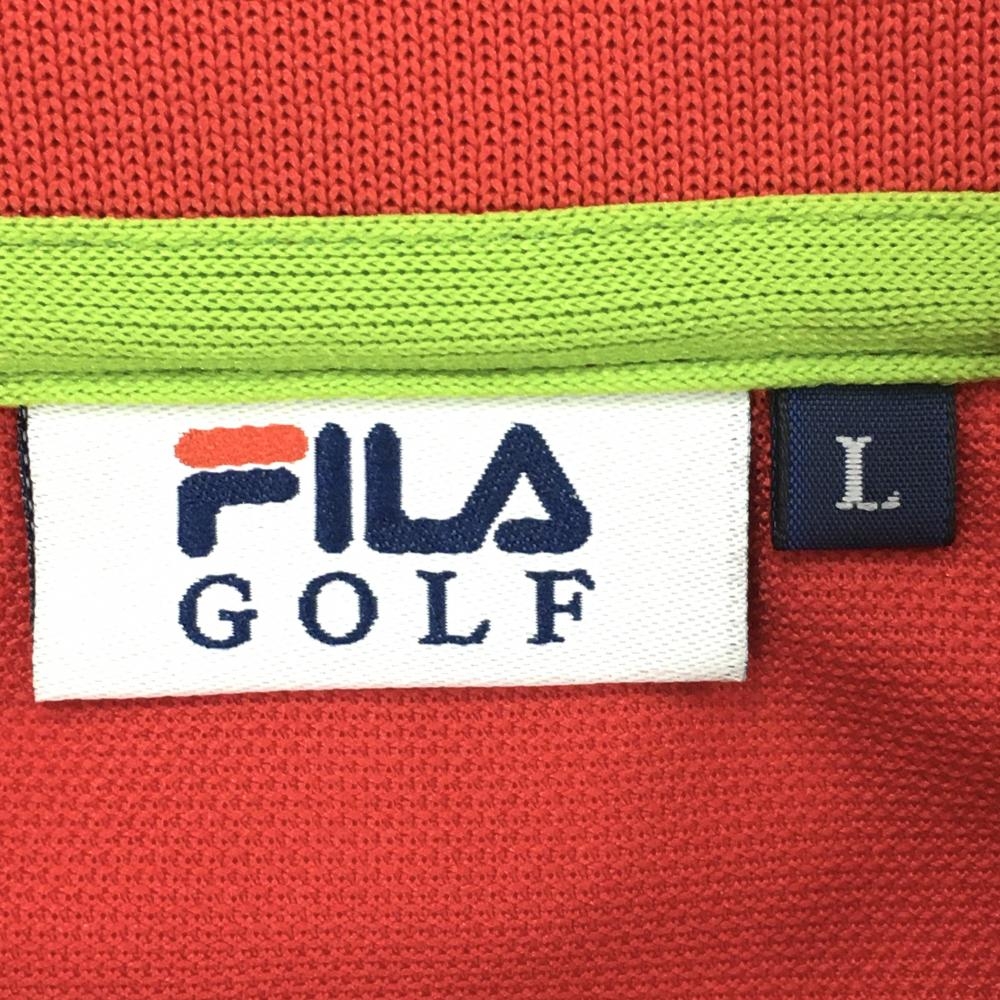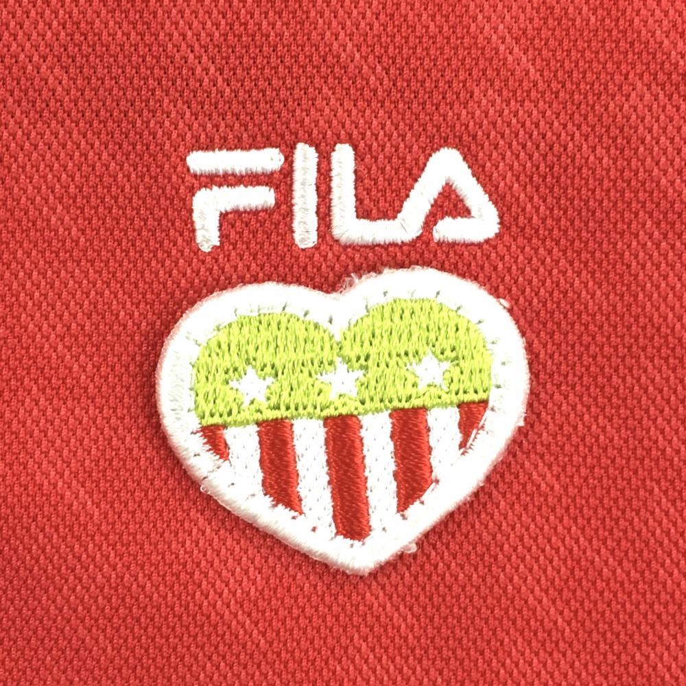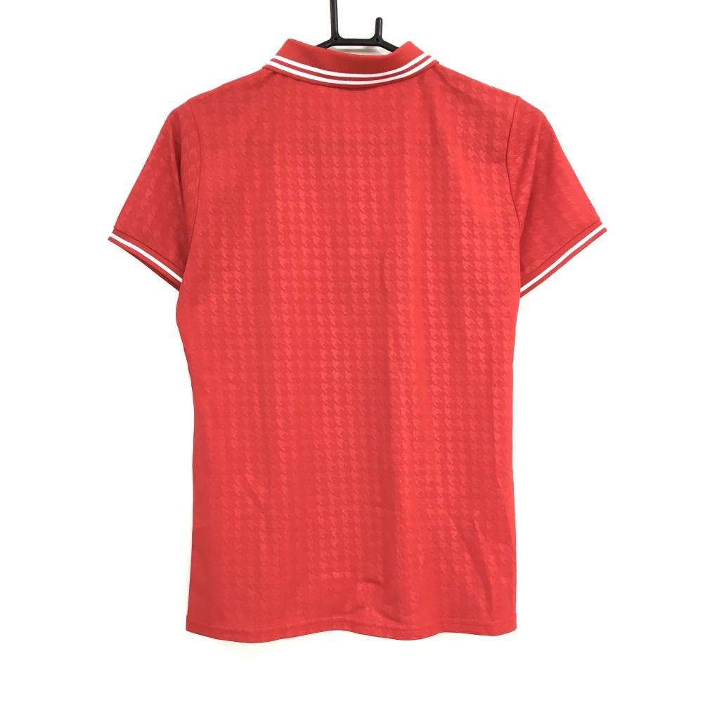 【超美品】フィラゴルフ 半袖ポロシャツ レッド 千鳥柄地模様 襟・袖口ライン レディース L ゴルフウェア FILA GOLF