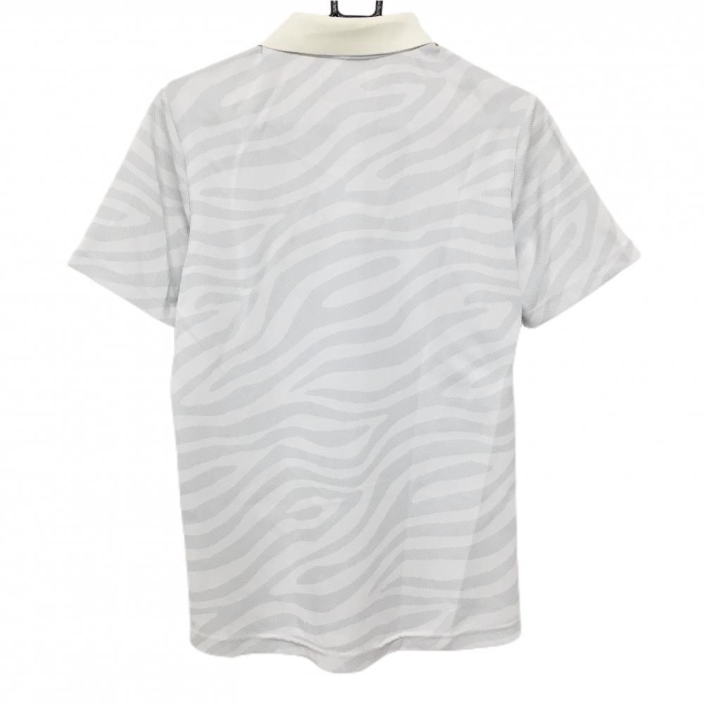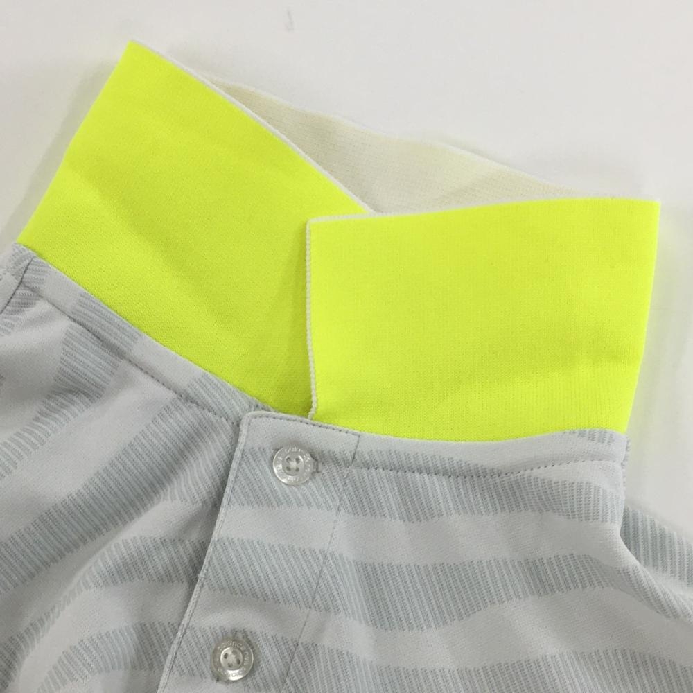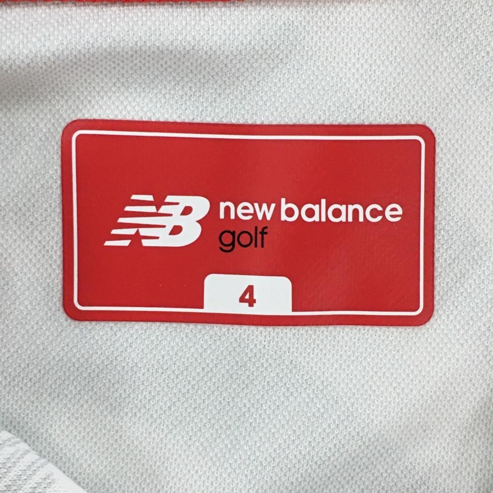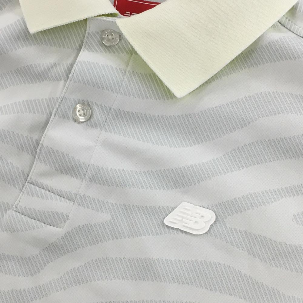 【超美品】ニューバランスゴルフ 半袖ポロシャツ ライトグレー×黒 総柄 サイドライン メンズ 4(M) ゴルフウェア New Balance