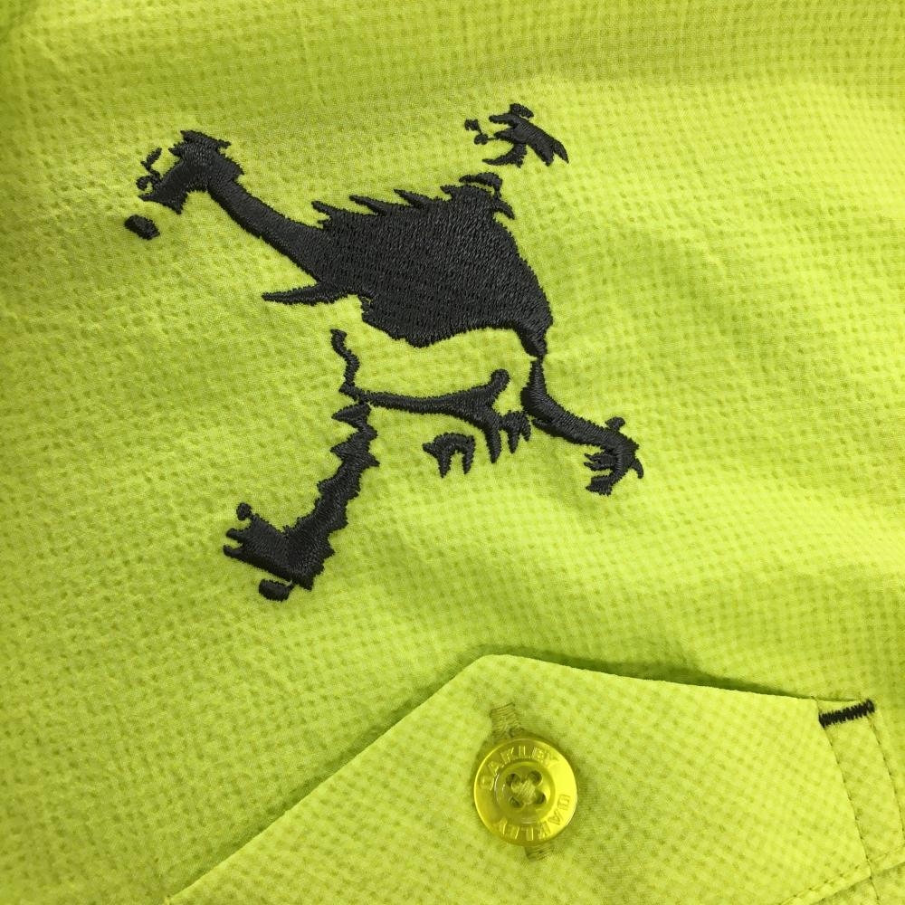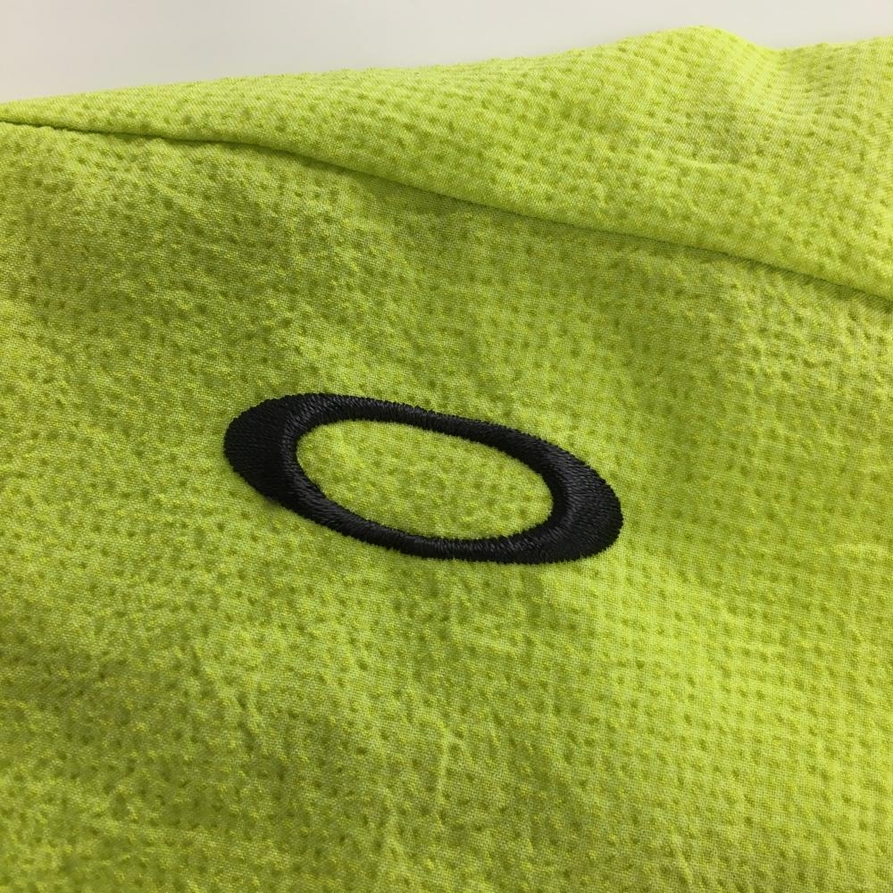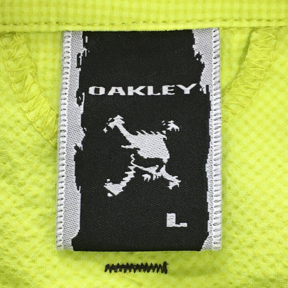 【超美品】オークリー 半袖シャツ ライムイエロー×ダークグレー ティー装着可 胸ポケット メンズ L ゴルフウェア Oakley