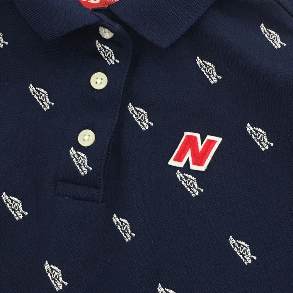 【美品】ニューバランスゴルフ 半袖ポロシャツ ネイビー×白 総柄 スニーカー レディース 1 ゴルフウェア New Balance