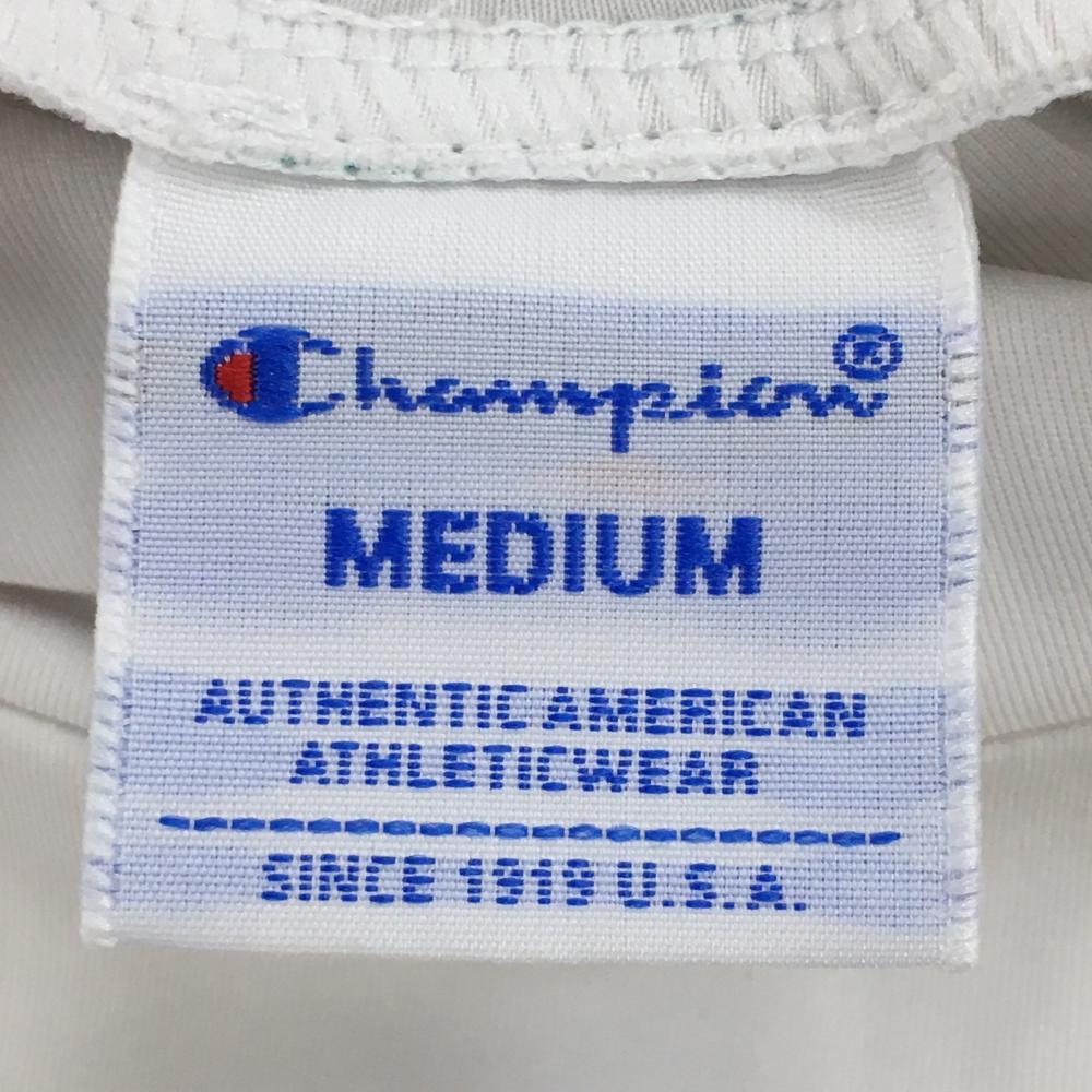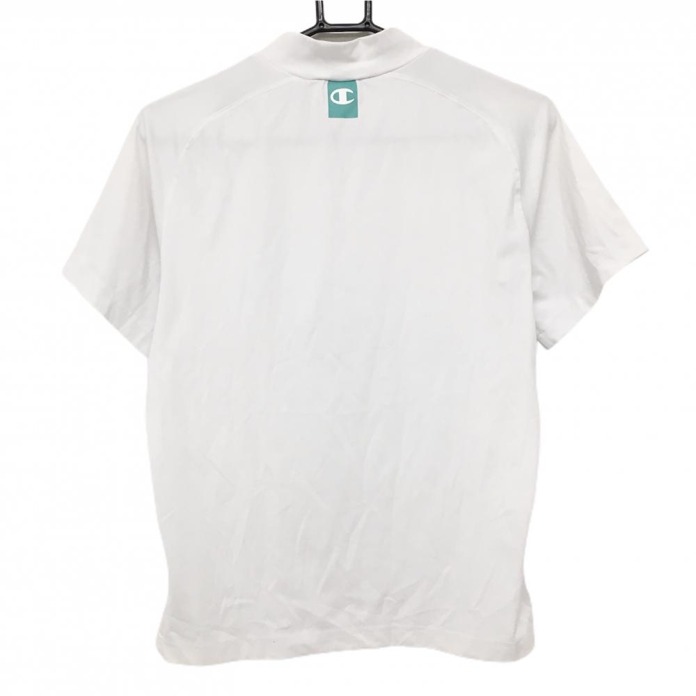 チャンピオン 半袖ハイネックシャツ 白×グリーン ロゴプリント レディース MEDIUM ゴルフウェア Champion