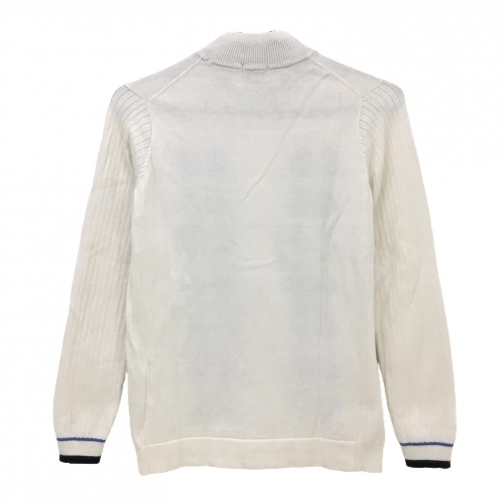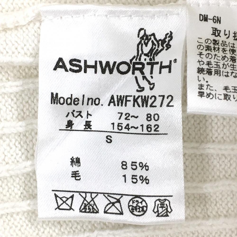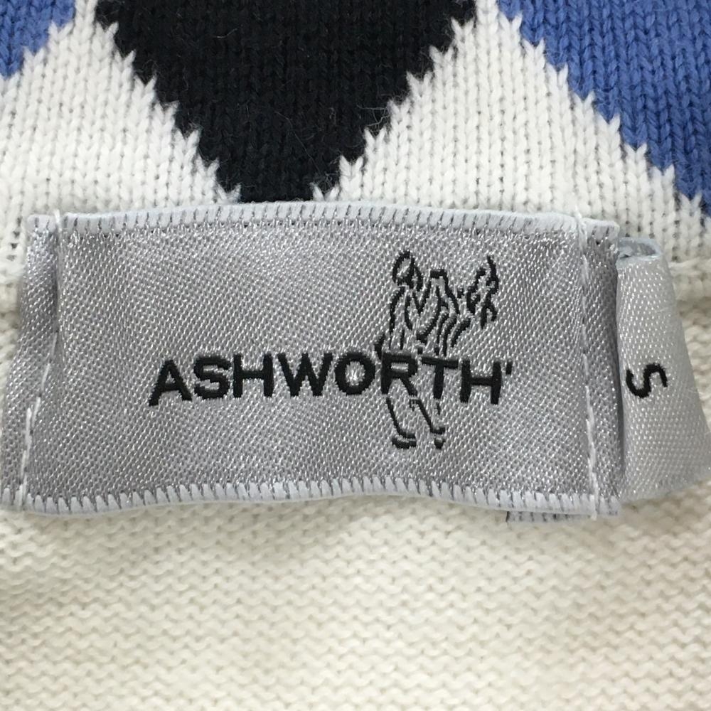 【超美品】アシュワース ニットジャケット 白×ネイビー 前身頃ダイヤ柄 ウール混 レディース S ゴルフウェア ASHWORTH
