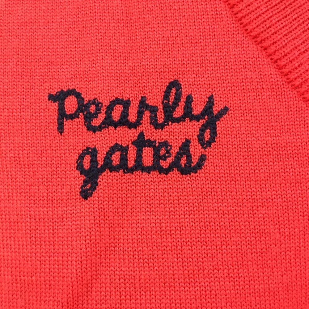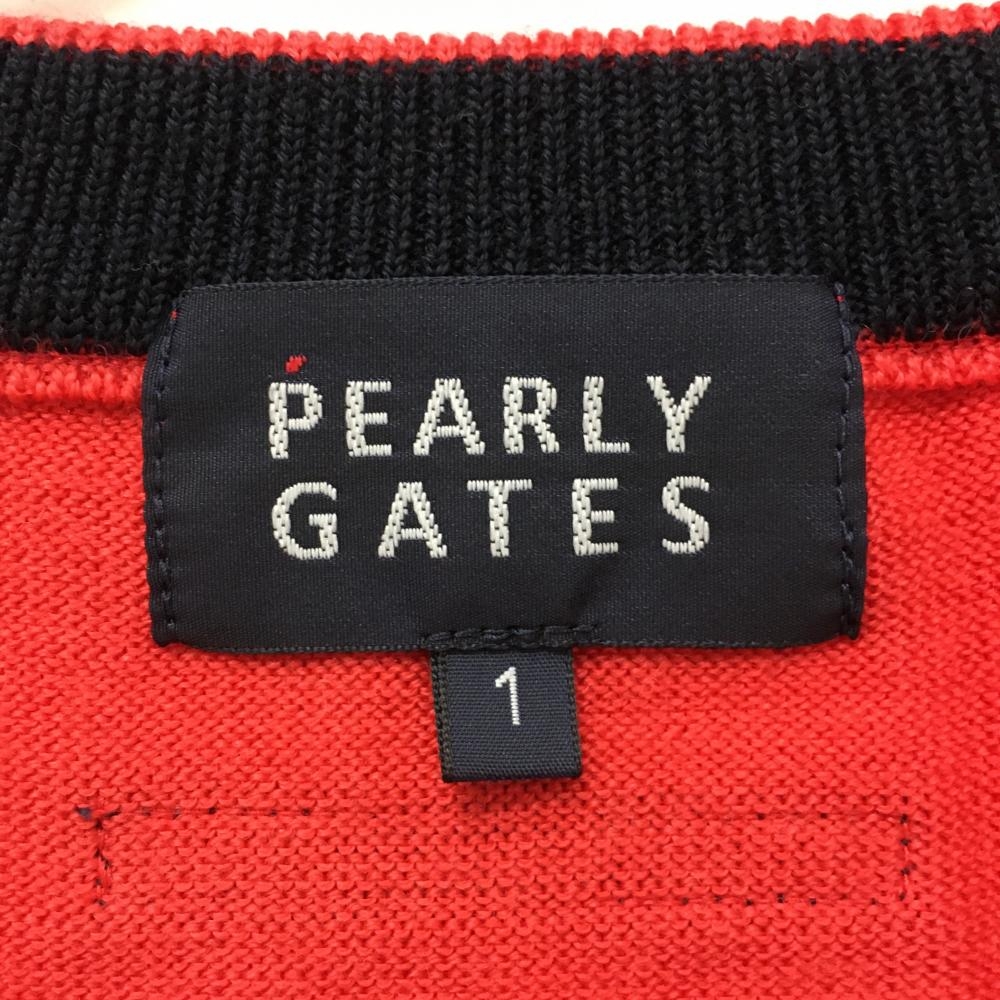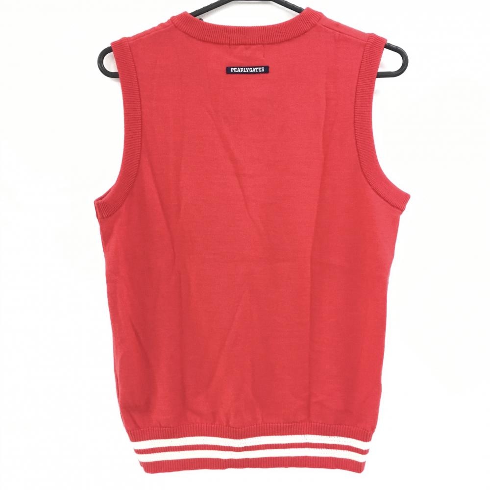 【超美品】パーリーゲイツ ニットベスト レッド Vネック 裾ライン レディース 1(M) ゴルフウェア PEARLY GATES