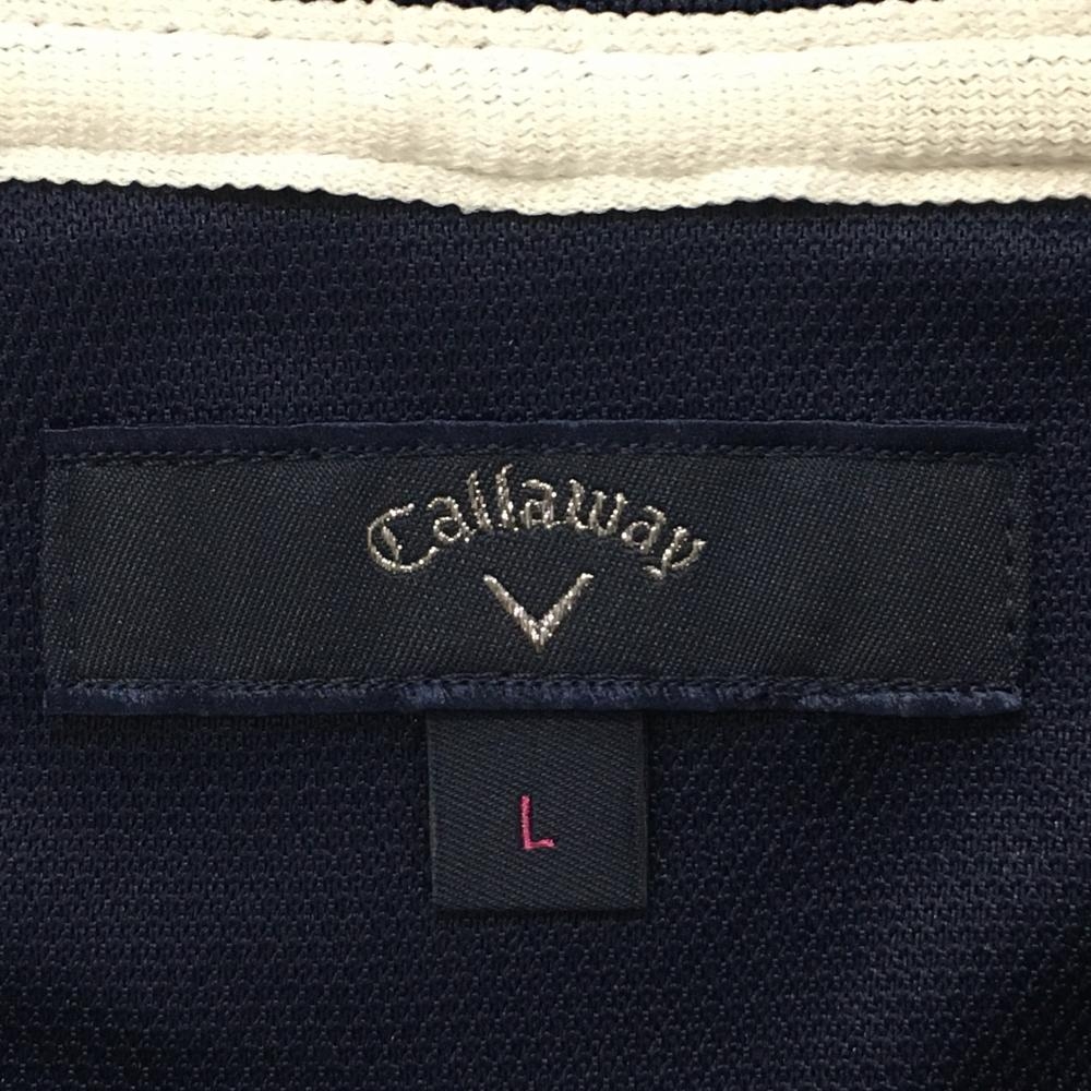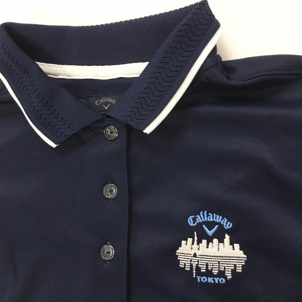【美品】キャロウェイ 半袖ポロシャツ ネイビー×白 襟一部メッシュ TOKYO 後ろ裾糸引き レディース ゴルフウェア Callaway
