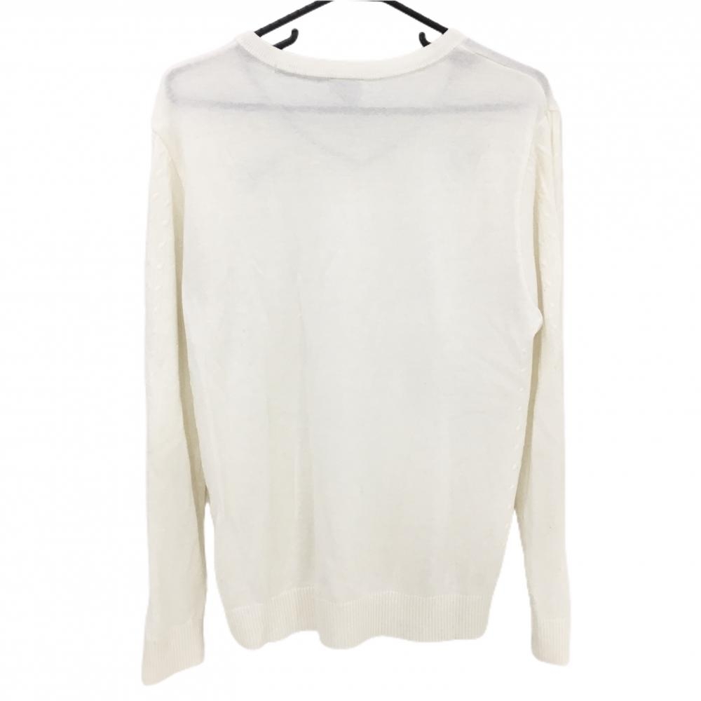 プーマ セーター 白 袖ケーブル編み ニット ウール混 Vネック メンズ L ゴルフウェア PUMA