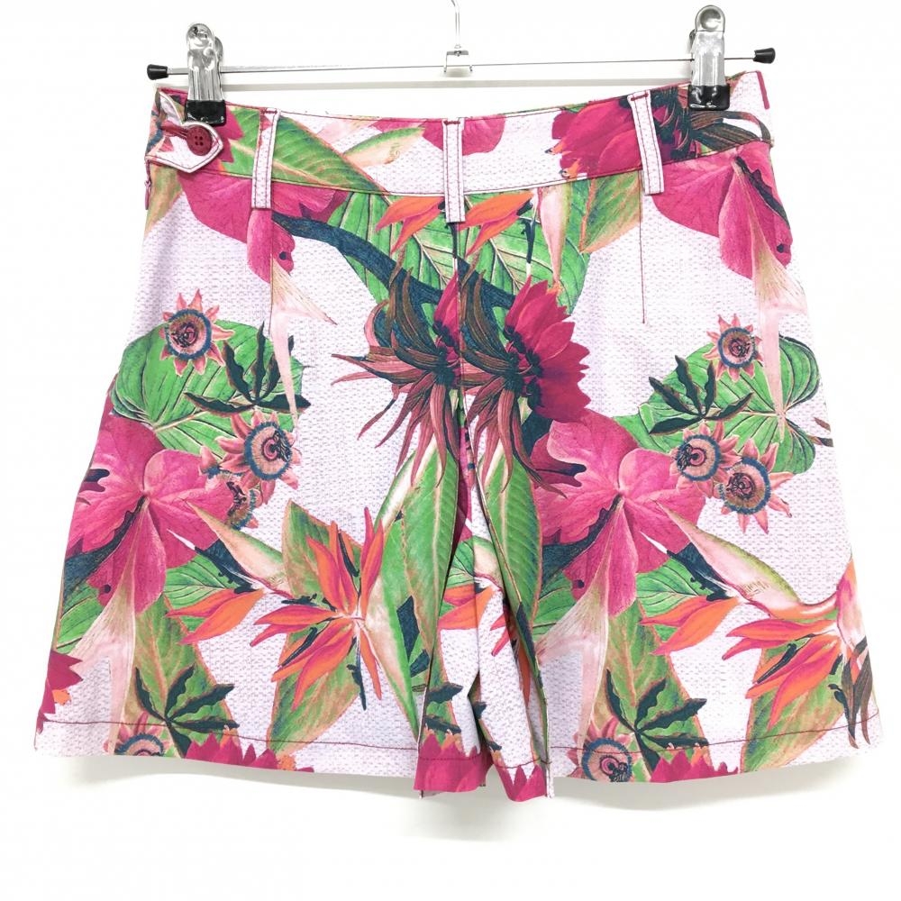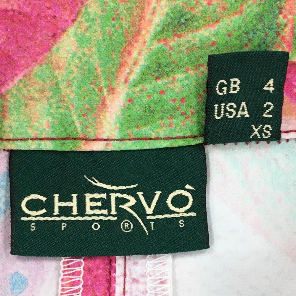 【超美品】シェルボ キュロットスカート ライトピンク×レッドピンク 花柄 ロゴ刺しゅう レディース USA-2/XS ゴルフウェア CHERVO