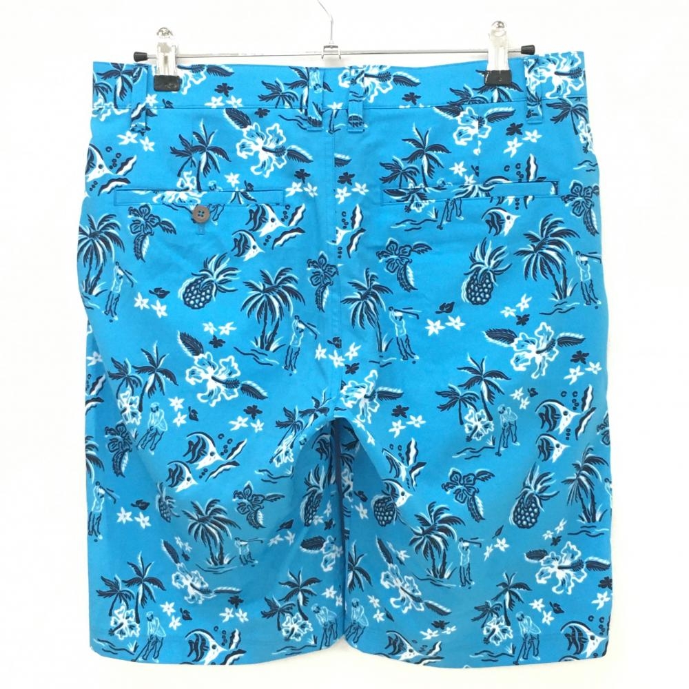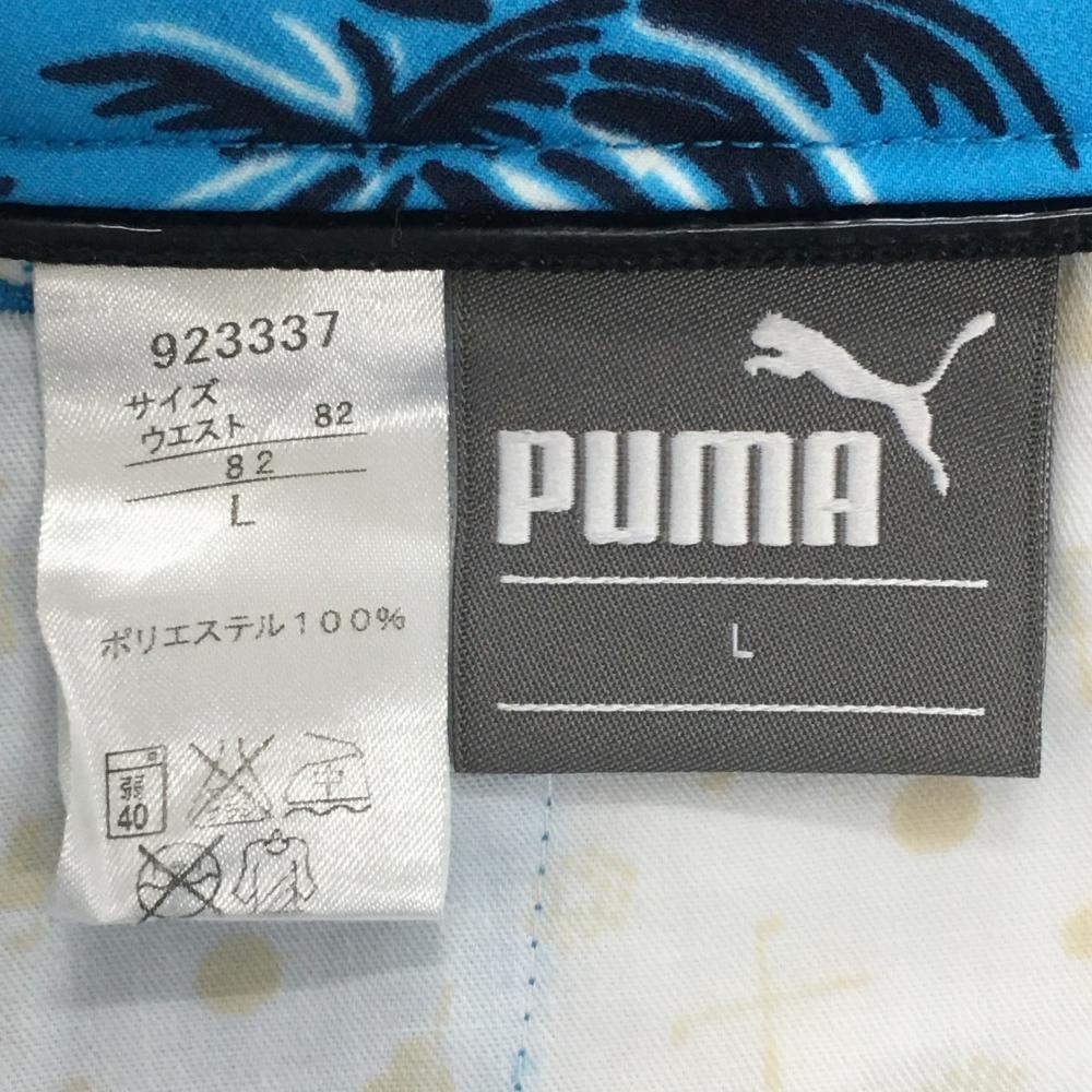【超美品】プーマ ハーフパンツ ライトブルー×ネイビー×白 総柄 ヤシの木 パイナップル ハイビスカス メンズ L ゴルフウェア PUMA