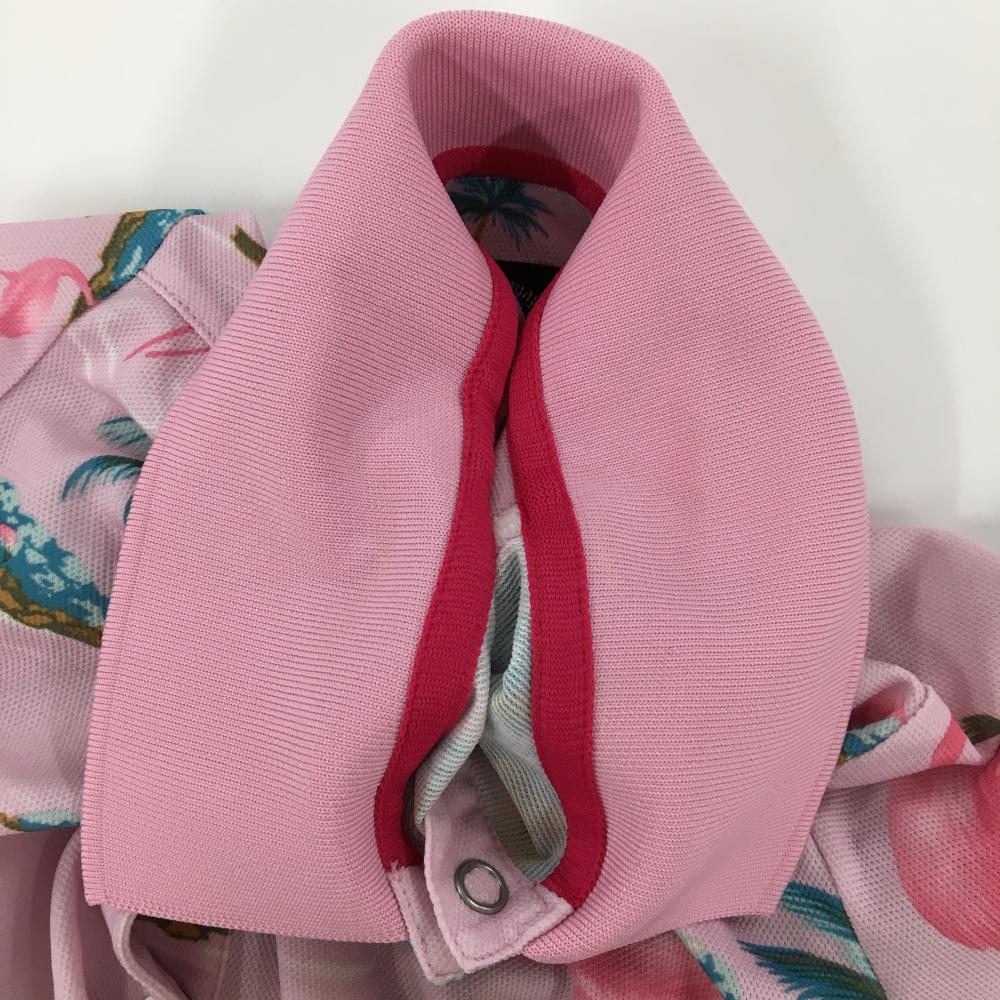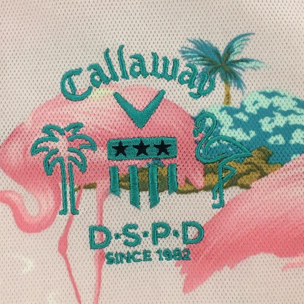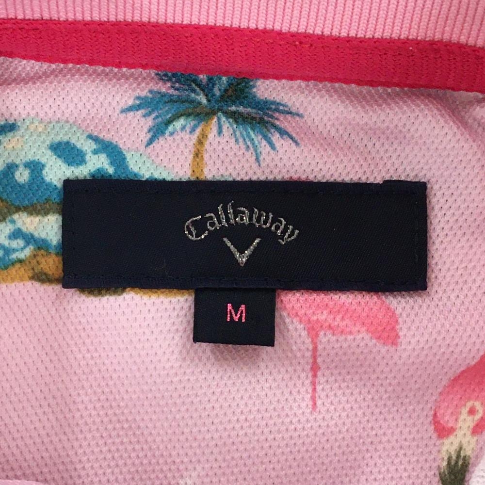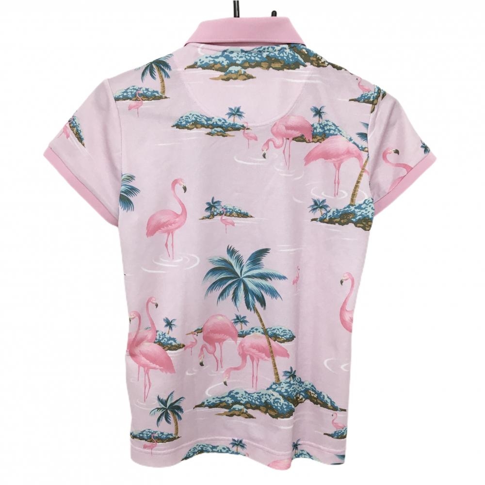 キャロウェイ 半袖ポロシャツ ピンク×ブルー フラミンゴ柄 スナップボタン レディース M ゴルフウェア Callaway