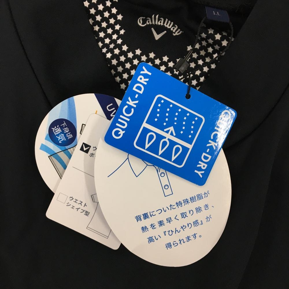 【新品】キャロウェイ 半袖ハイネックシャツ 黒 ボーダー織生地 COOL UVカット メンズ LL ゴルフウェア Callaway