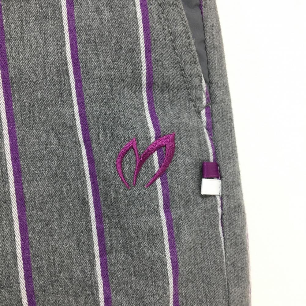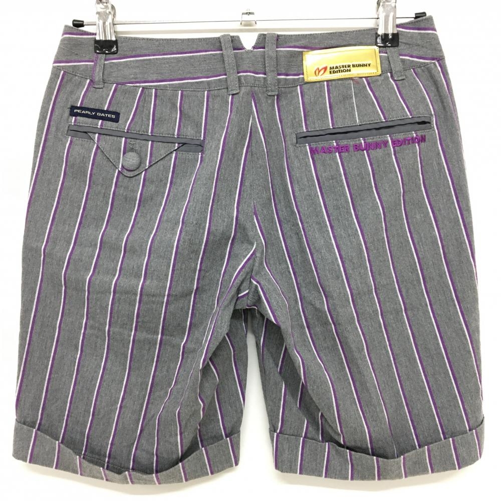 【美品】マスターバニー ショートパンツ グレー×パープル ストライプ レディース 1 ゴルフウェア MASTER BUNNY EDITION