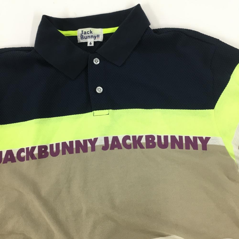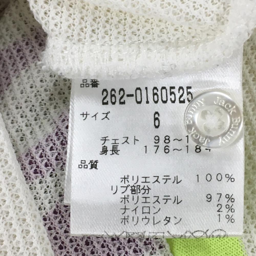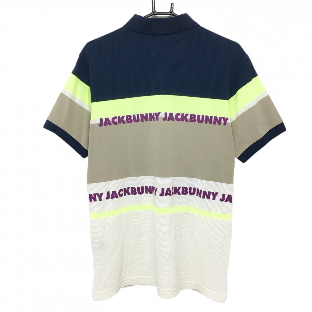 【美品】ジャックバニー 半袖ポロシャツ 白×ネイビー×ライトグリーン ロゴパープル メンズ XL ゴルフウェア Jack Bunny