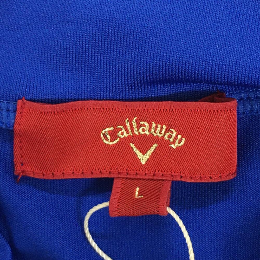 【新品】キャロウェイ レッドレーベル ノースリーブハイネックシャツ ブルー×白 胸元リーフ柄 レディース L ゴルフウェア Callaway