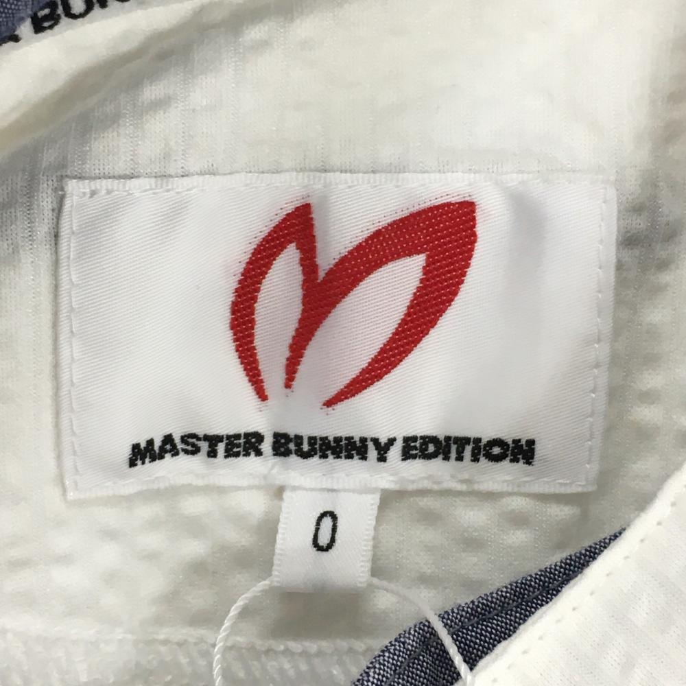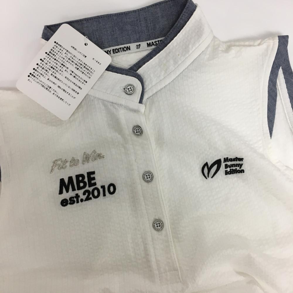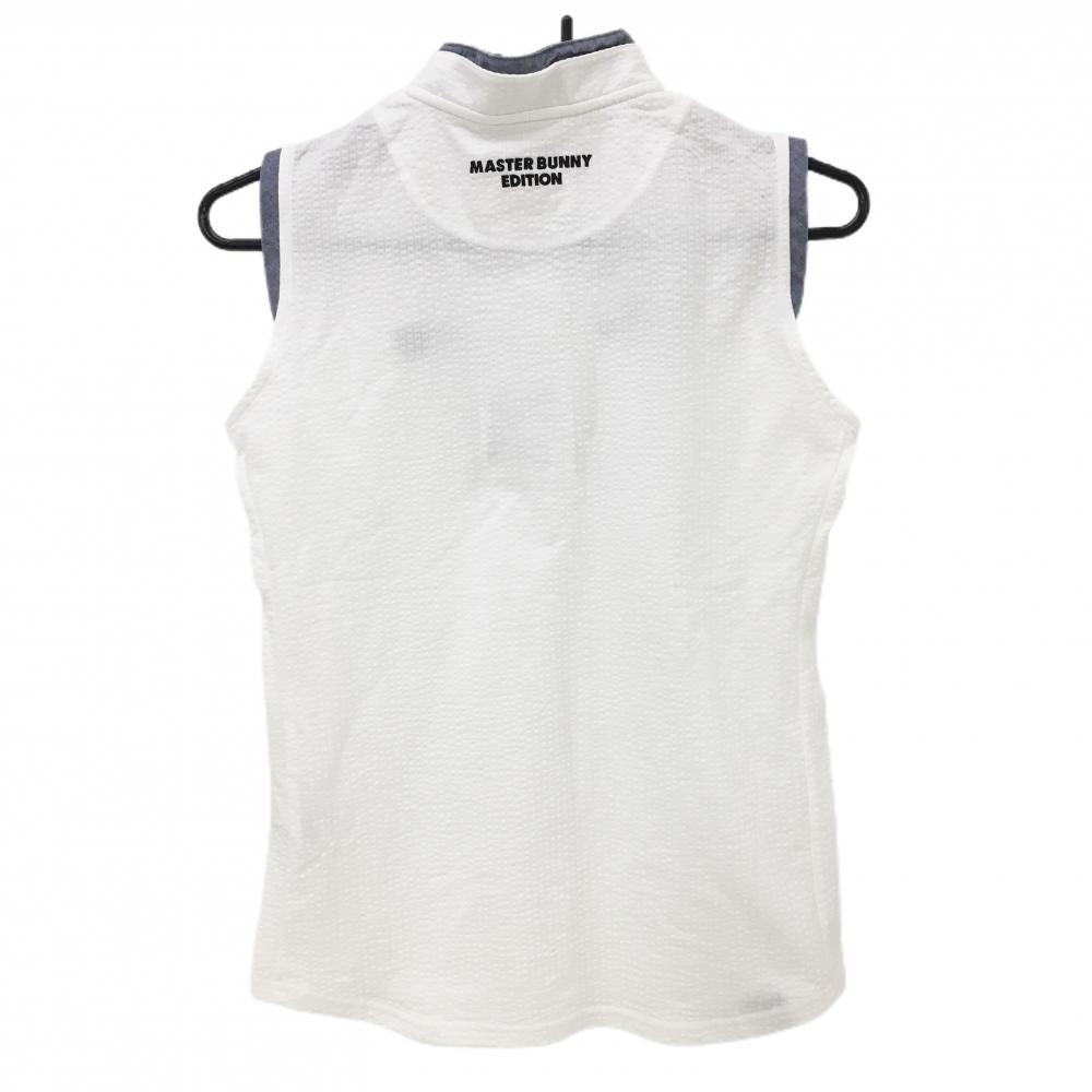 【新品】マスターバニー ノースリーブポロシャツ 白×ネイビー サッカー生地 レディース 0(S) ゴルフウェア MASTER BUNNY EDITION