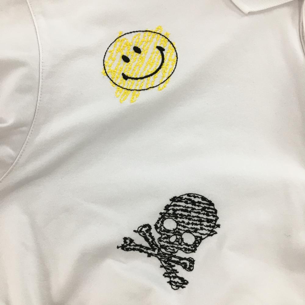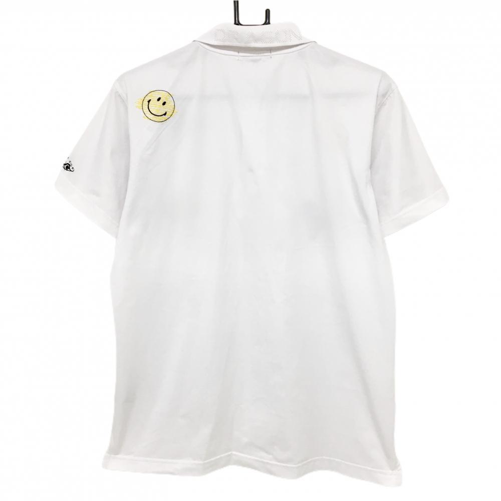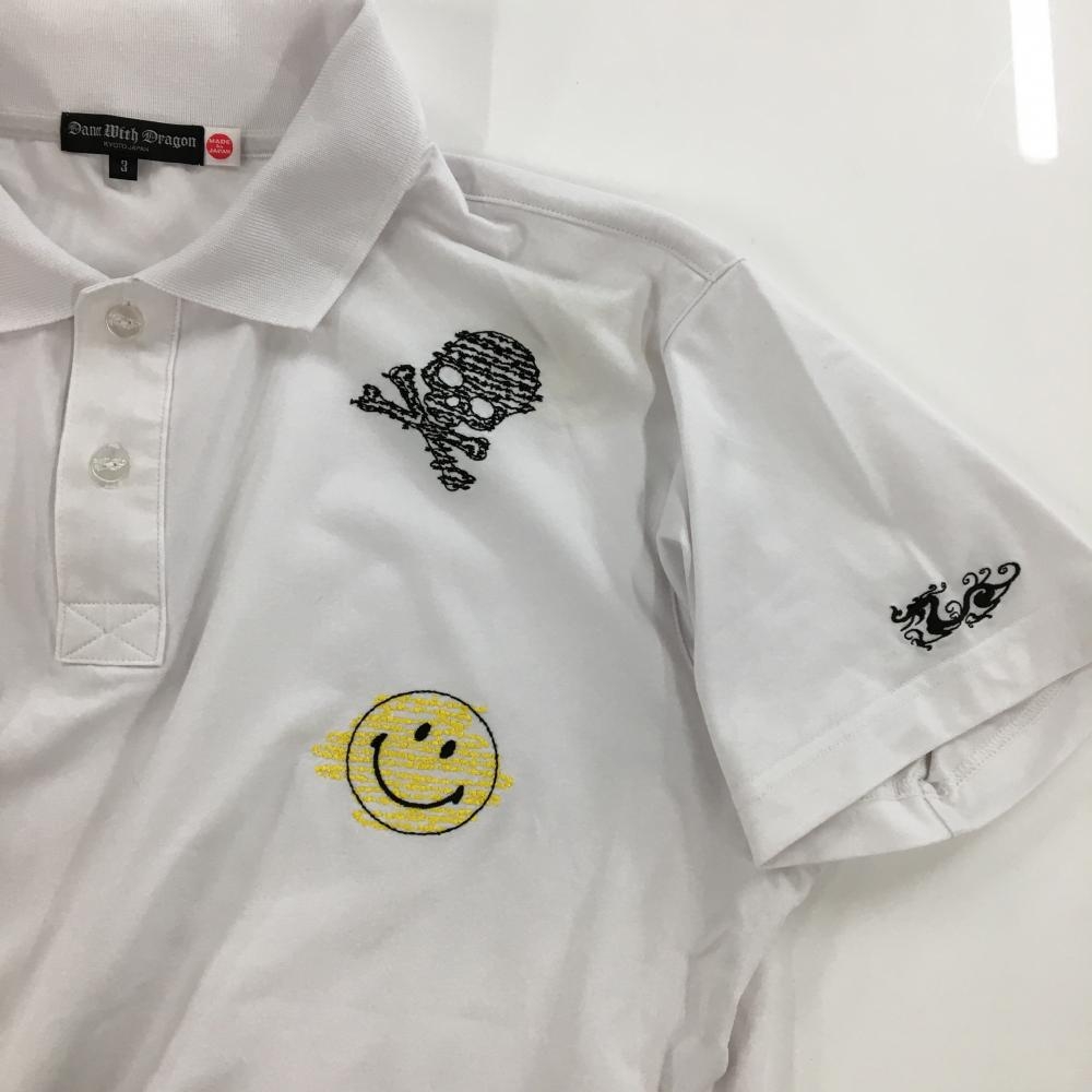 【超美品】ダンスウィズドラゴン 半袖ポロシャツ 白×黒 スカル ニコちゃん スマイル メンズ 3(L) ゴルフウェア Dance With Dragon