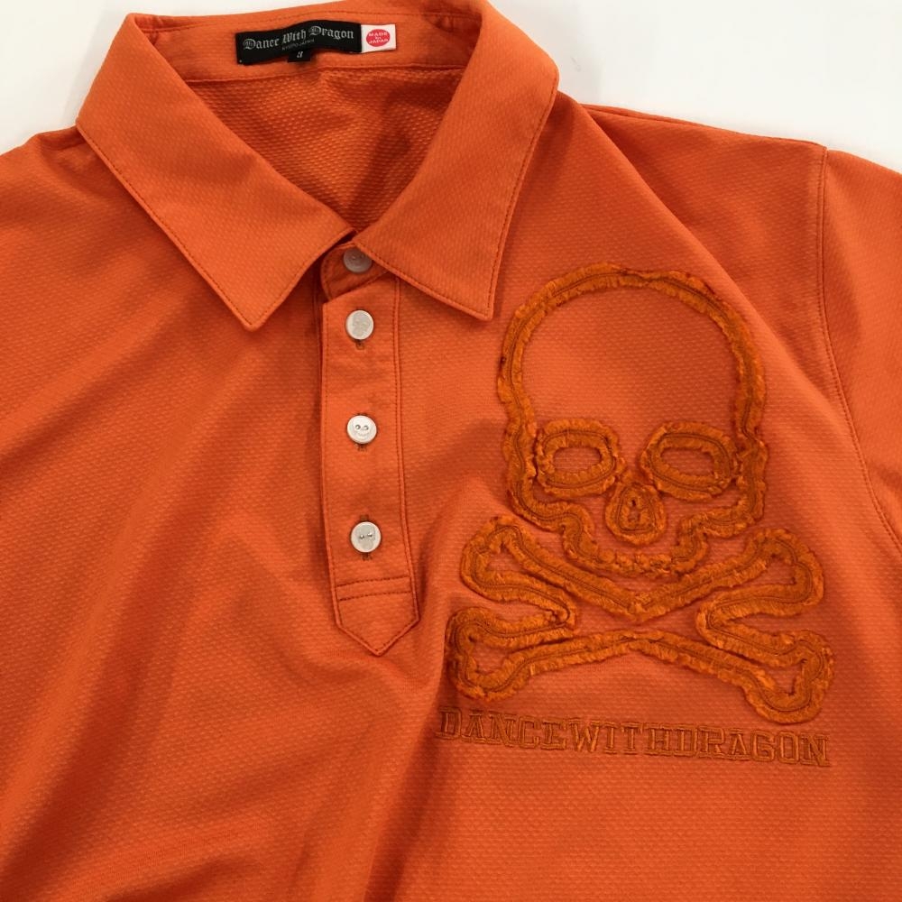 【超美品】ダンスウィズドラゴン 半袖ポロシャツ オレンジ 胸スカル メンズ 3(L) ゴルフウェア Dance With Dragon