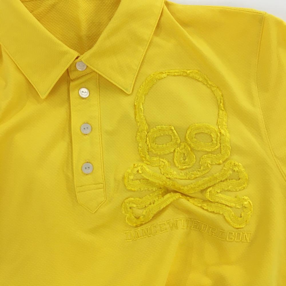 【超美品】ダンスウィズドラゴン 半袖ポロシャツ イエロー 胸スカル メンズ 3(L) ゴルフウェア Dance With Dragon