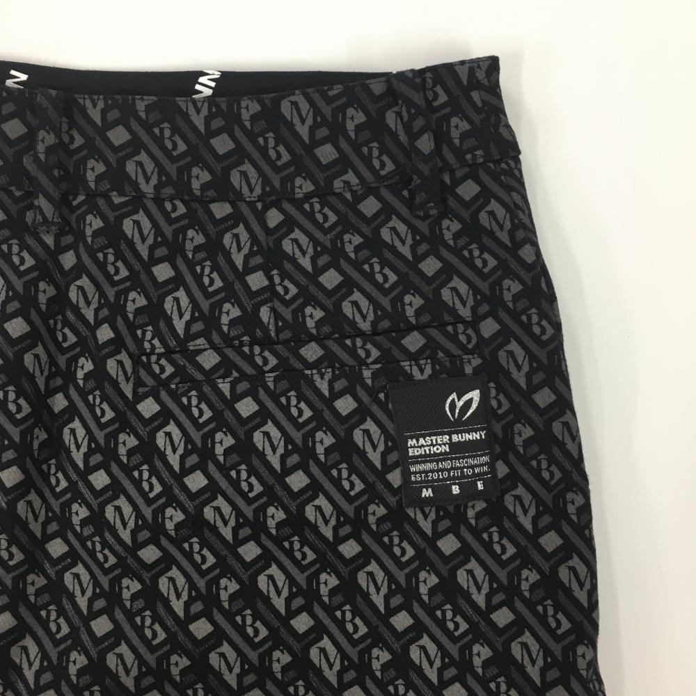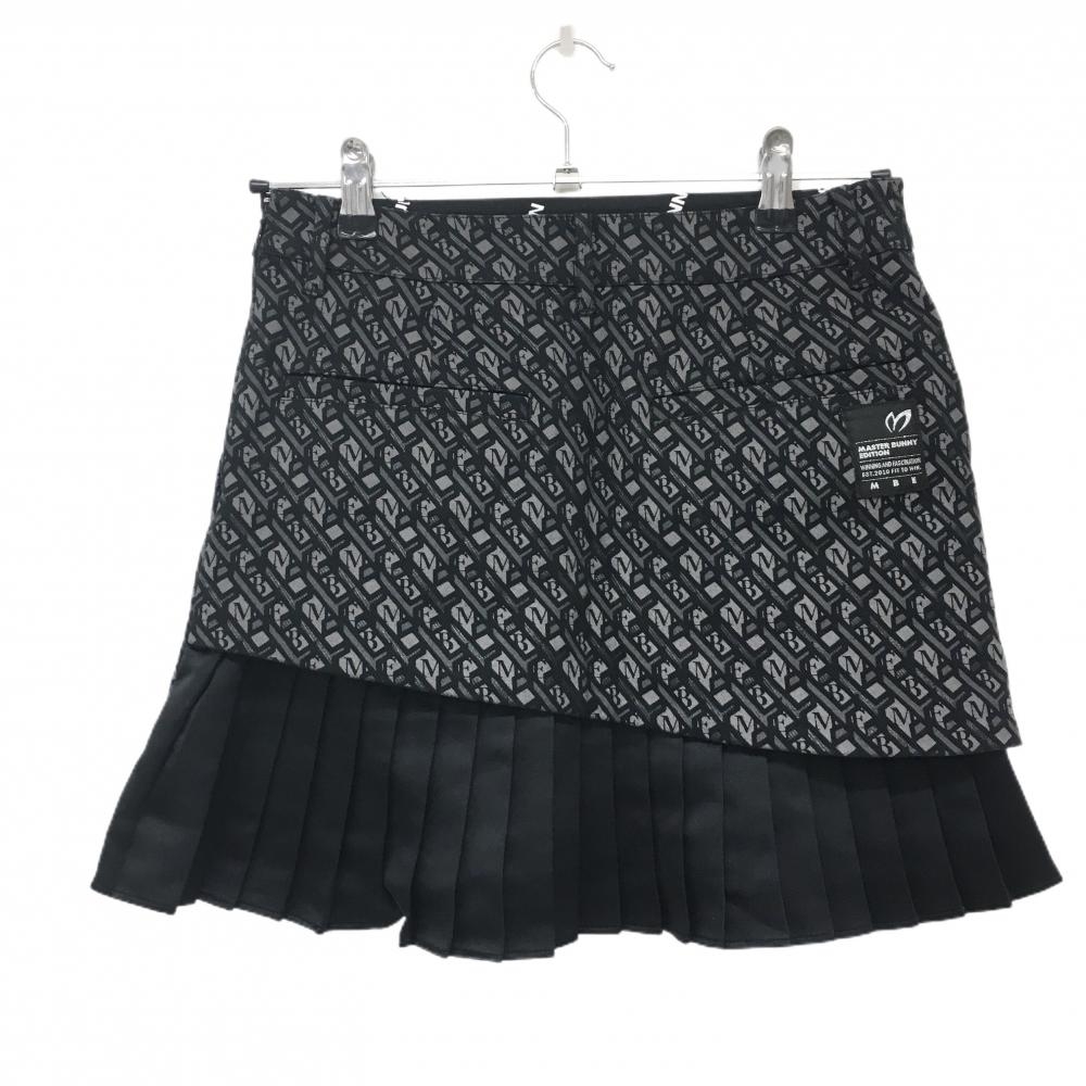 【超美品】マスターバニー スカート 黒×グレージュ ロゴ総柄 後裾プリーツ レディース 0(S) ゴルフウェア MASTER BUNNY EDITION