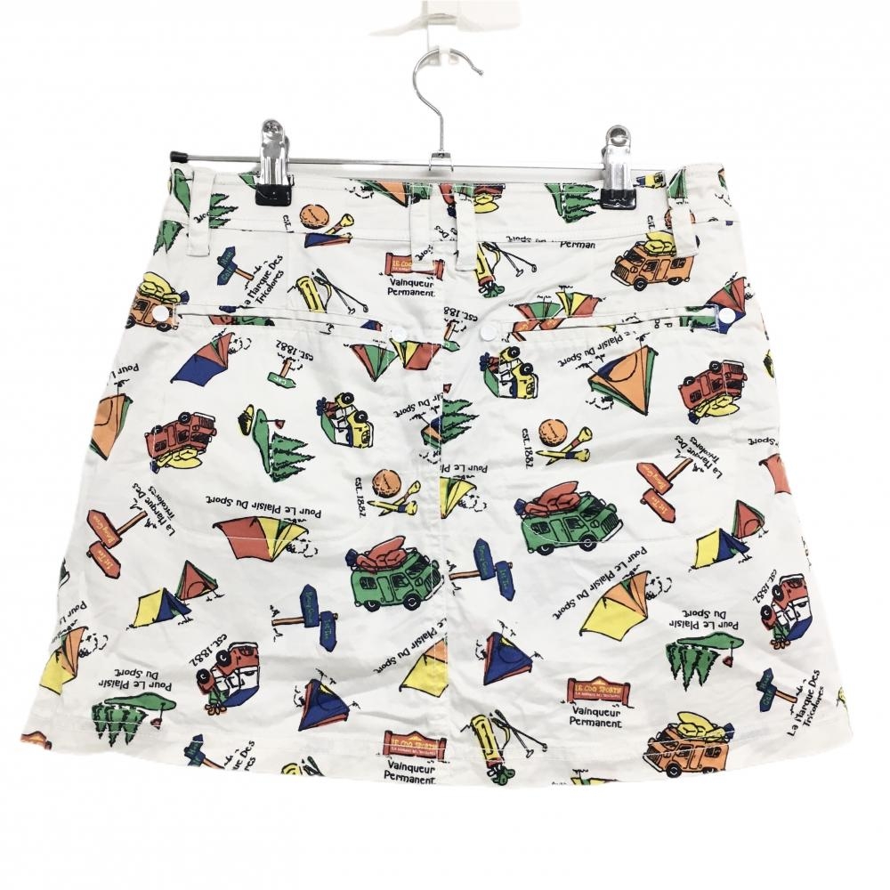 ルコックゴルフ スカート 白×マルチカラー 総柄 キャンプ ストレッチ 内側インナーパンツ レディース 9 ゴルフウェア le coq sportif