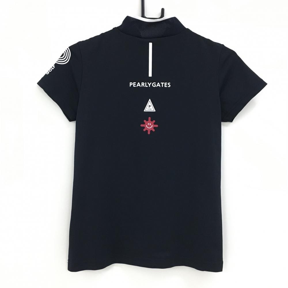 【超美品】パーリーゲイツ 半袖ハイネックシャツ ネイビー×白 レディース 0(S) ゴルフウェア 2024年モデル PEARLY GATES