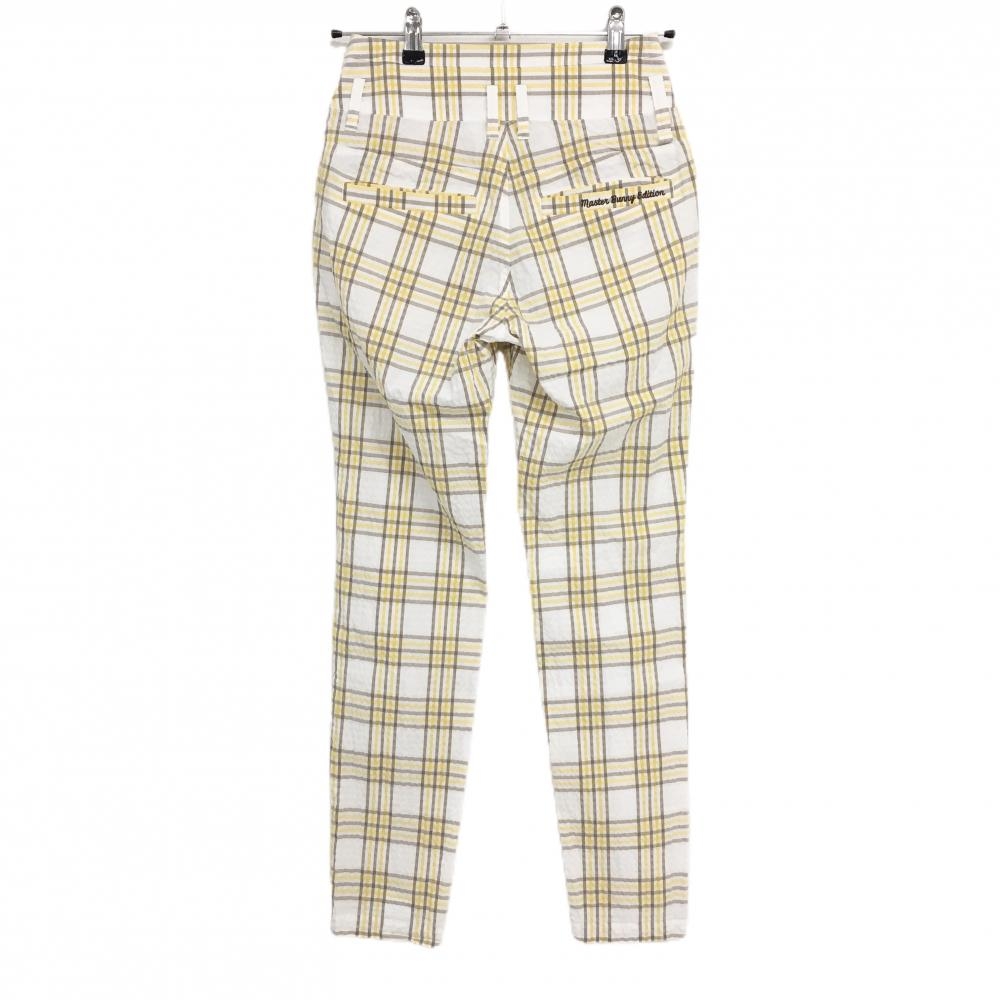 【超美品】マスターバニー パンツ 白×イエロー チェック サッカー生地 薄手 レディース 0(S) ゴルフウェア MASTER BUNNY EDITION