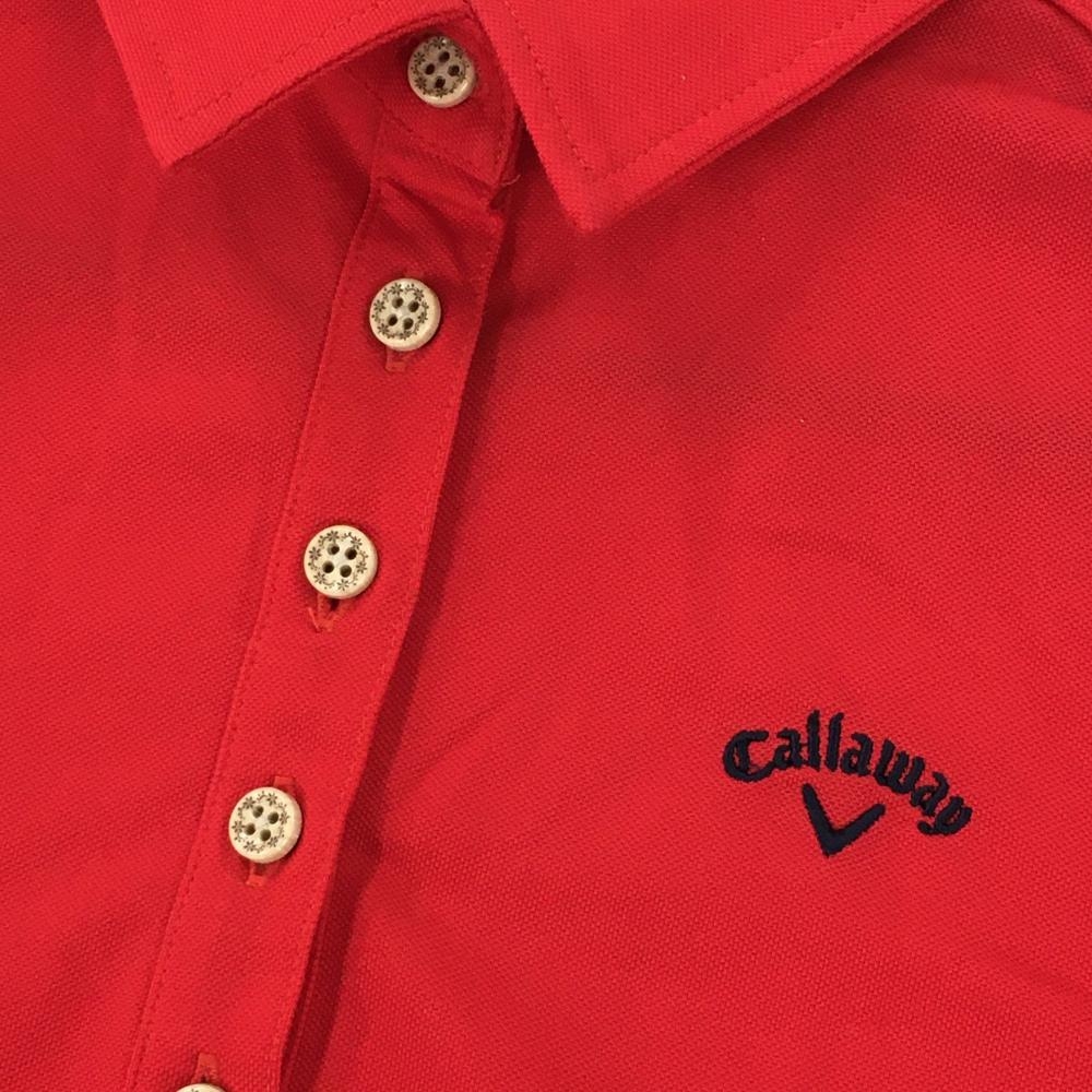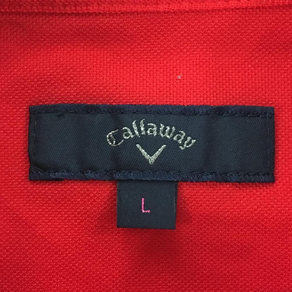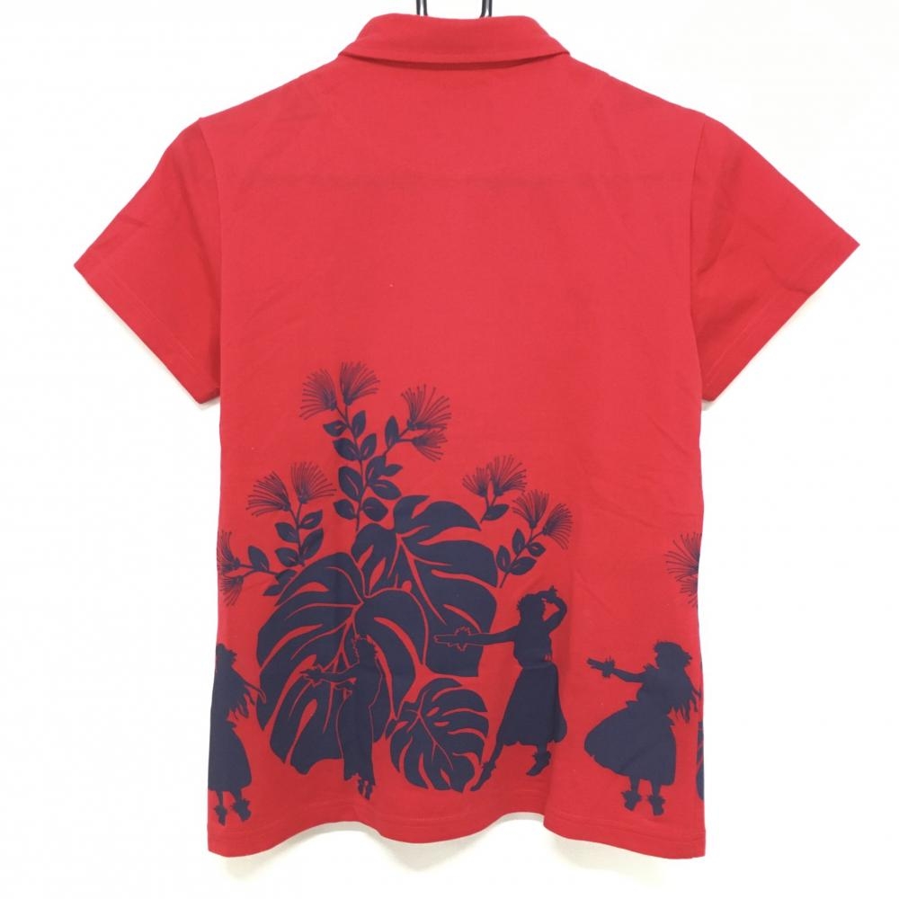 キャロウェイ 半袖ポロシャツ レッド×ネイビー リーフ フラダンス レディース L ゴルフウェア Callaway