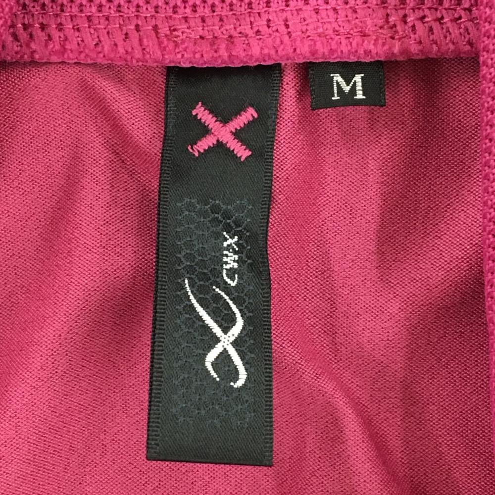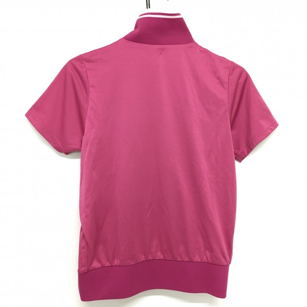 【美品】シーダブリューエックス 半袖ブルゾン ピンク×白 腹部ポケット レディース M ゴルフウェア CW-X