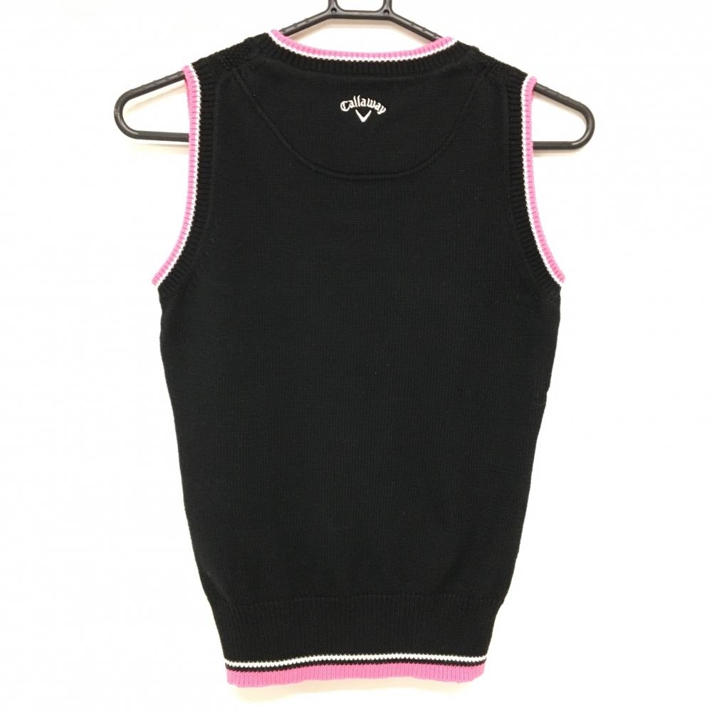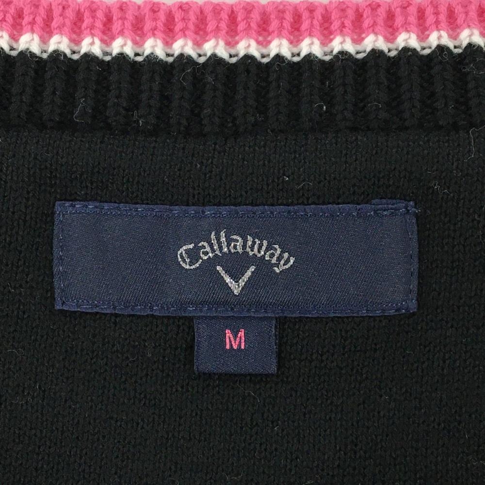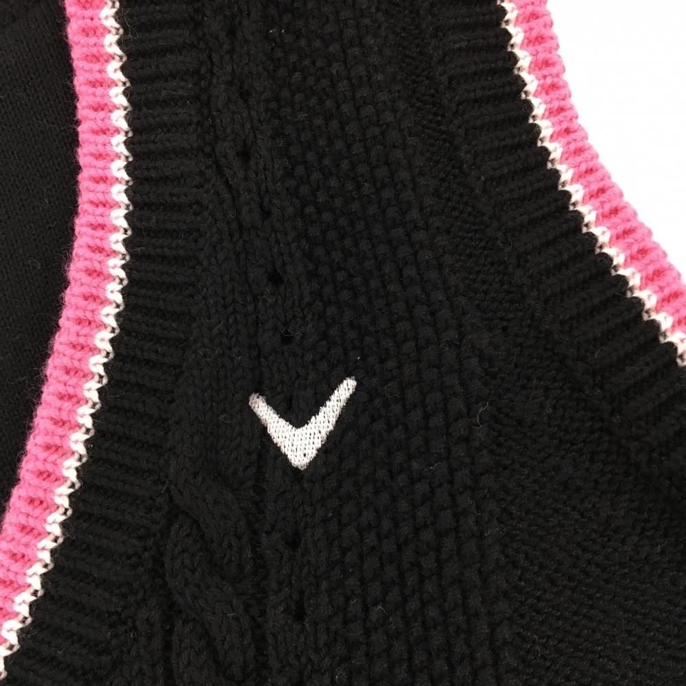 【美品】キャロウェイ ニットベスト 黒×ピンク ケーブル編み Vネック レディース M ゴルフウェア Callaway