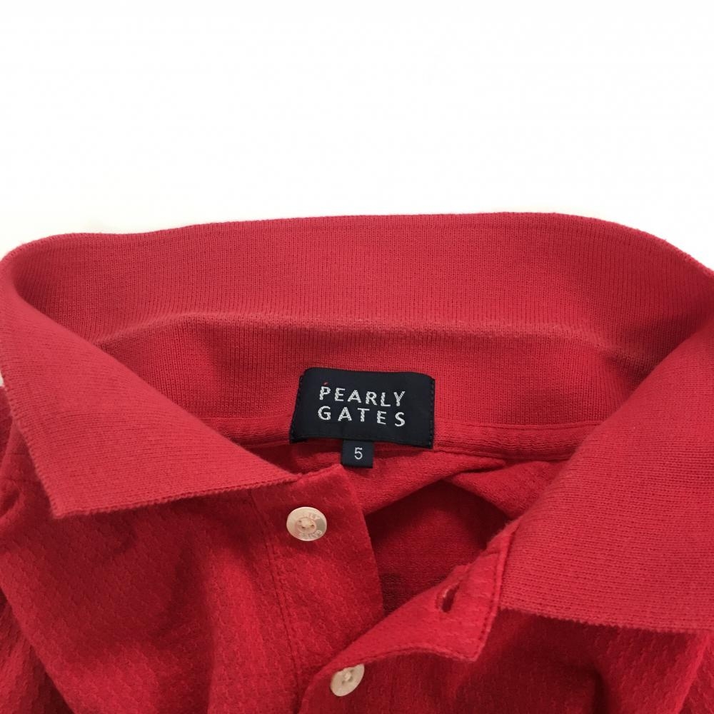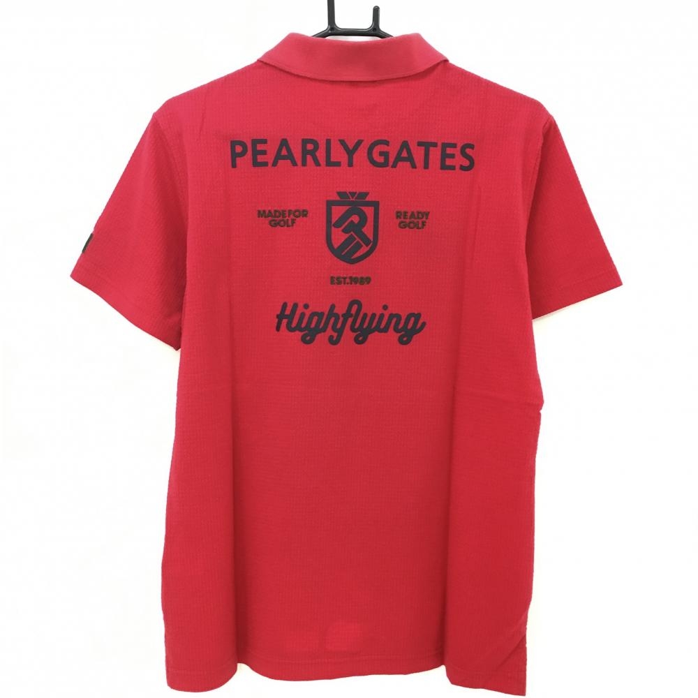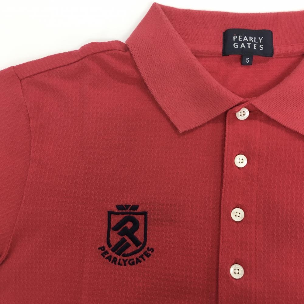 パーリーゲイツ 半袖ポロシャツ レッド 織生地 背面ロゴ メンズ 5(L) ゴルフウェア PEARLY GATES