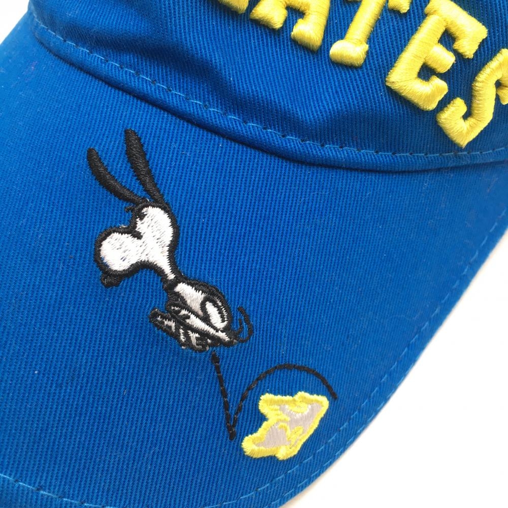 パーリーゲイツ×PEANUTS サンバイザー ブルー×イエロー スヌーピー コットン100% FR ゴルフウェア PEARLY GATES