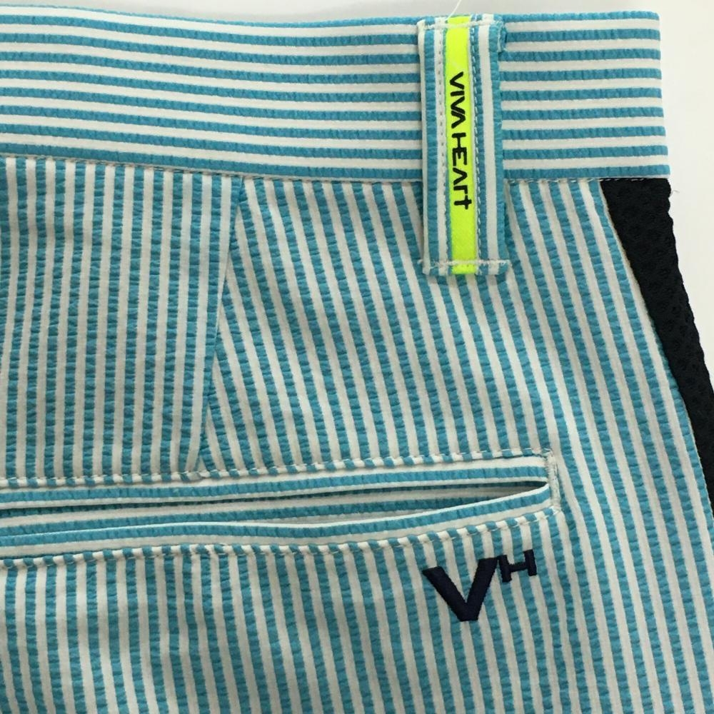 【超美品】ビバハート パンツ ライトブルー×白 ストライプ サッカー調生地 ストレッチ メンズ 85 ゴルフウェア VIVA HEART