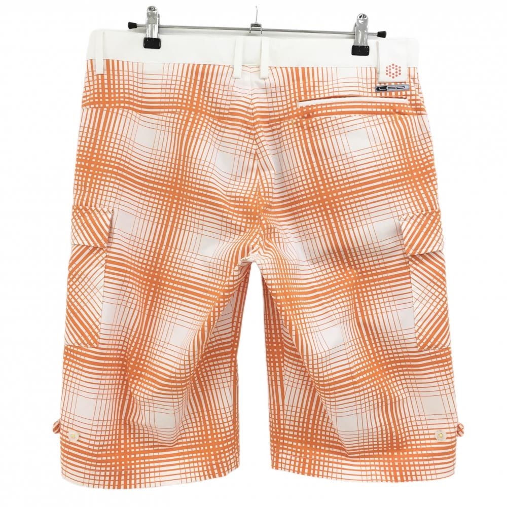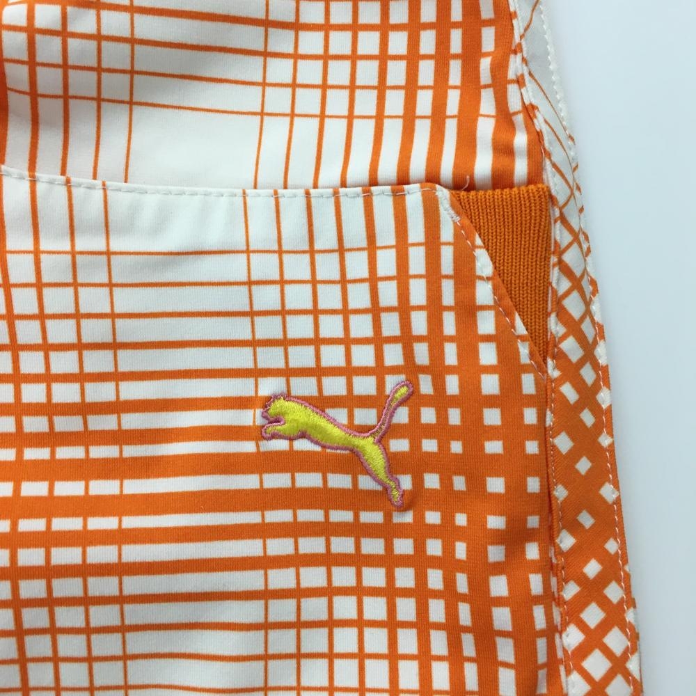 プーマ ハーフパンツ 白×オレンジ チェック ポケット複数 ストレッチ メンズ 88 ゴルフウェア PUMA