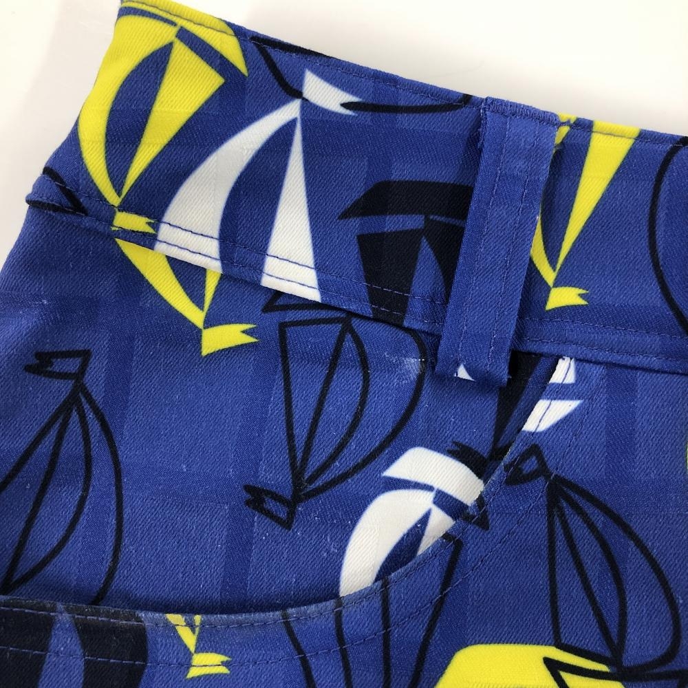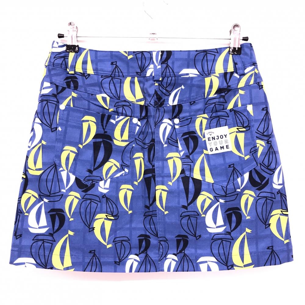 キャロウェイ スカート ブルー×イエロー ヨット柄 格子地模様 レディース L ゴルフウェア Callaway