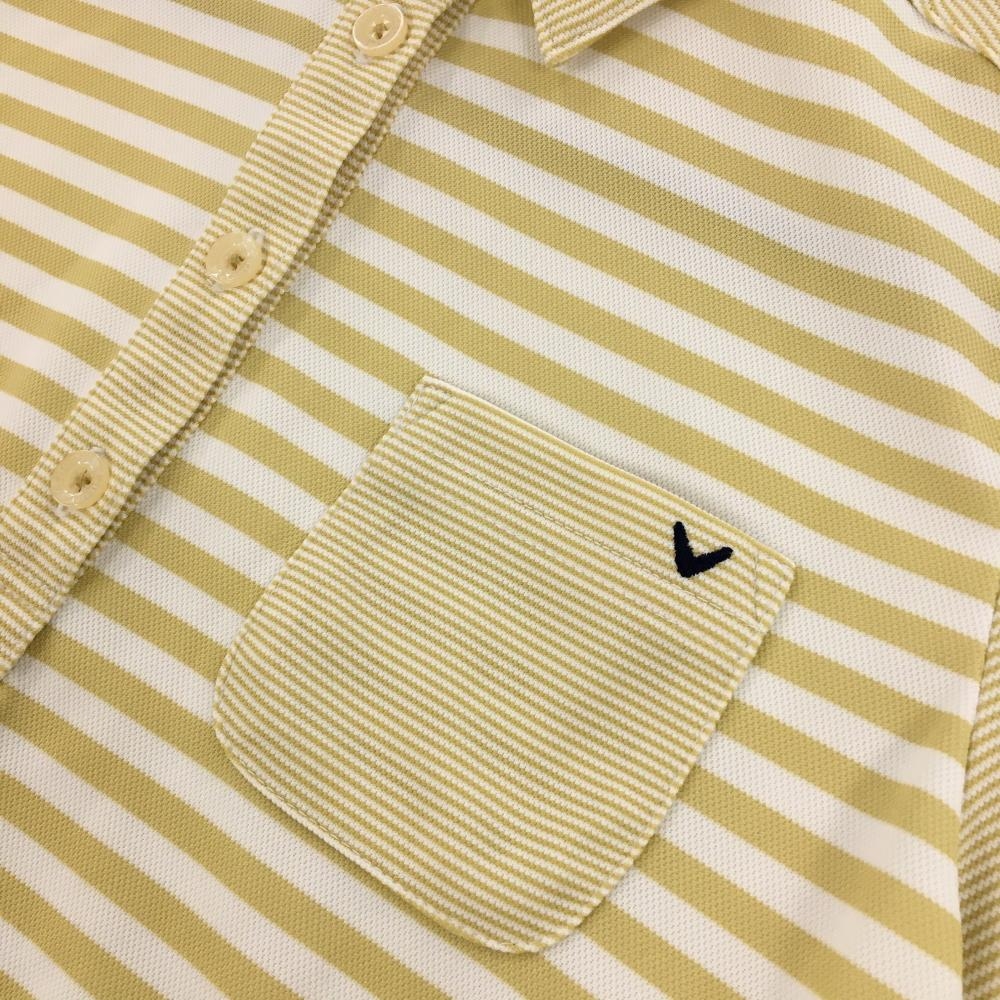 【超美品】キャロウェイ 半袖ポロシャツ ベージュ×白 ボーダー レディース S ゴルフウェア Callaway