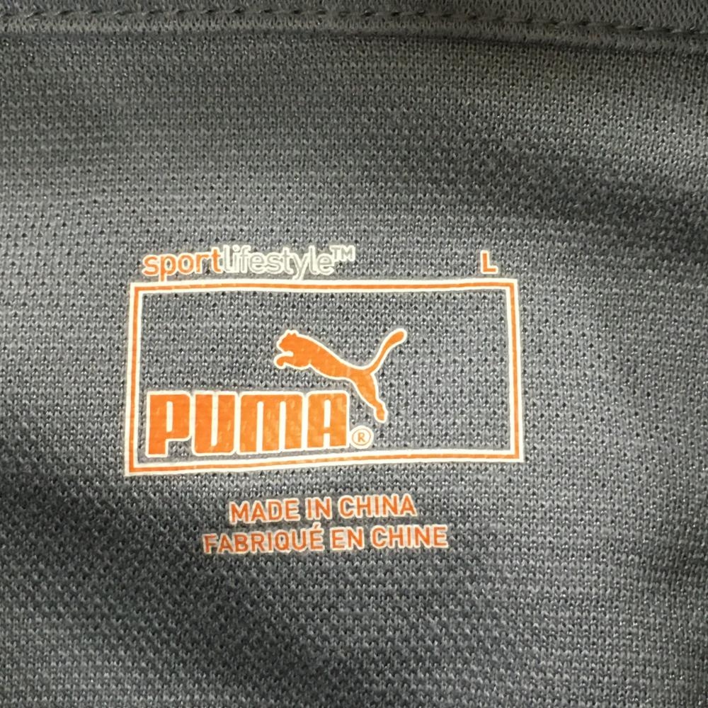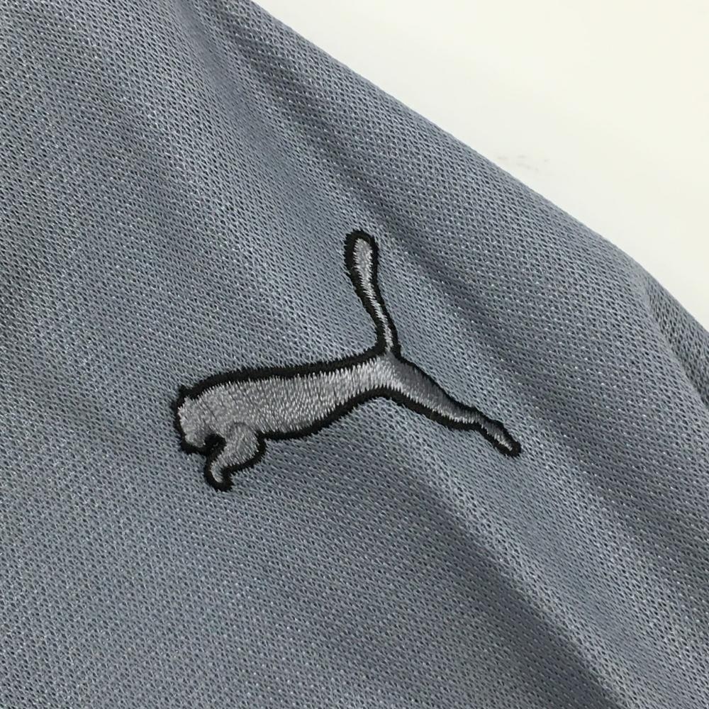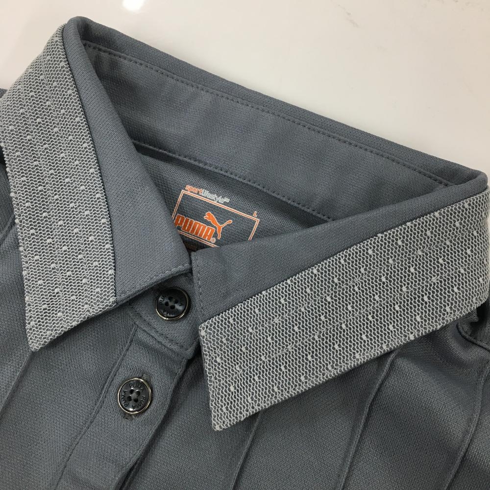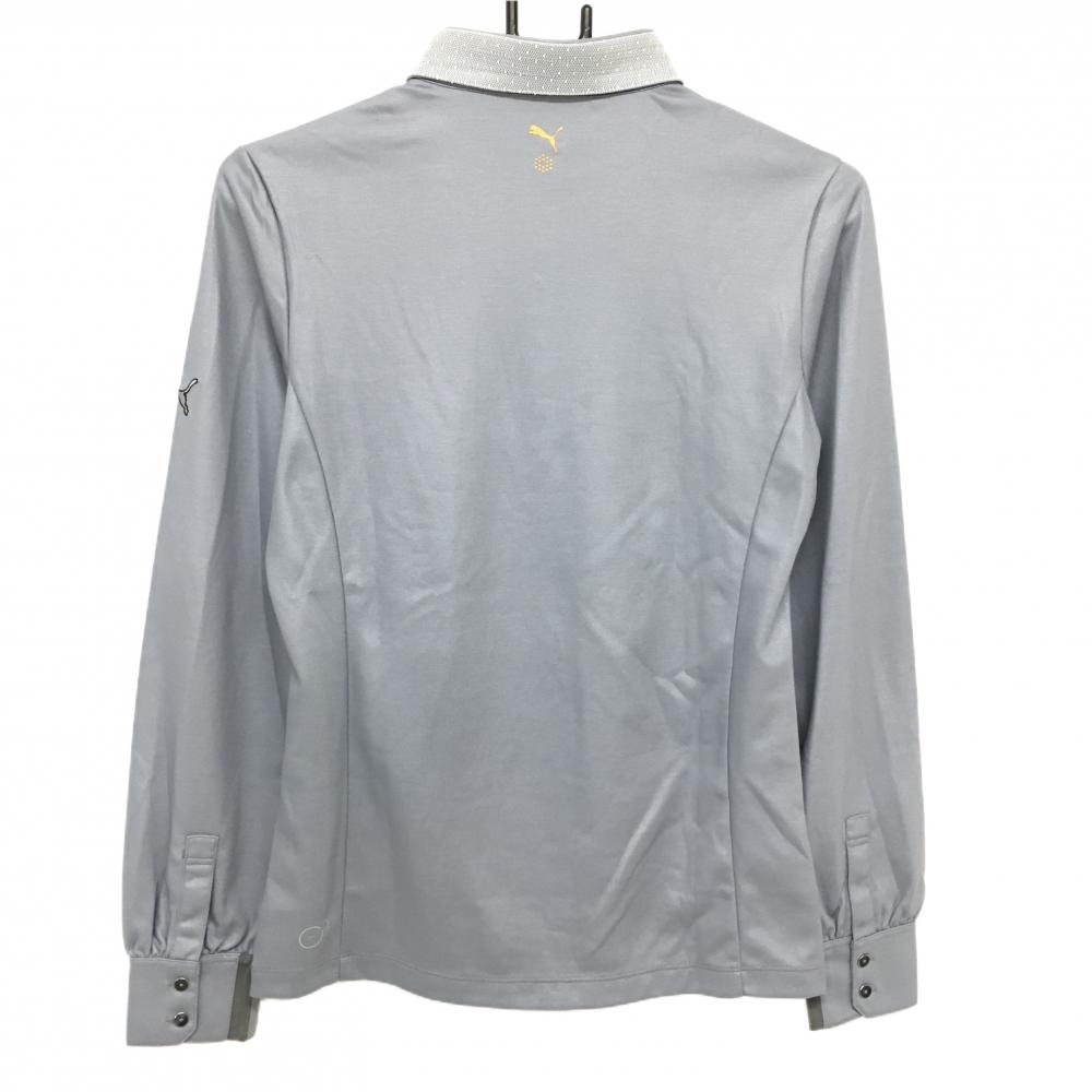 【超美品】プーマ 長袖ポロシャツ グレー 袖ロゴ 襟一部ドット調 レディース L ゴルフウェア PUMA