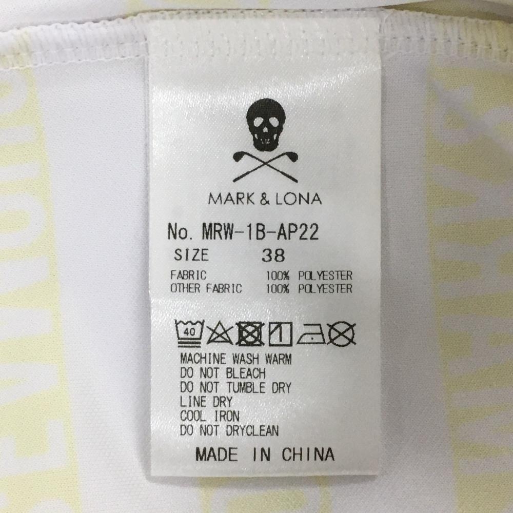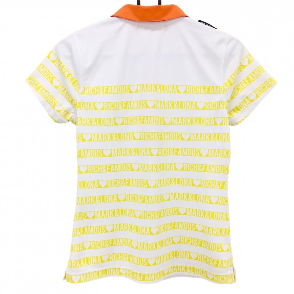 【超美品】マークアンドロナ 半袖ポロシャツ 白×イエロー ロゴボーダー ハート胸ポケット レディース 38(M) ゴルフウェア MARK&LONA