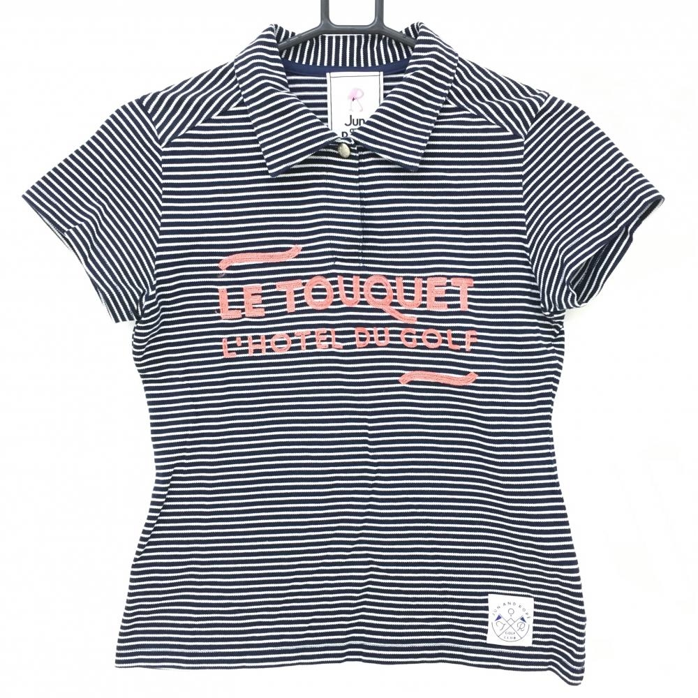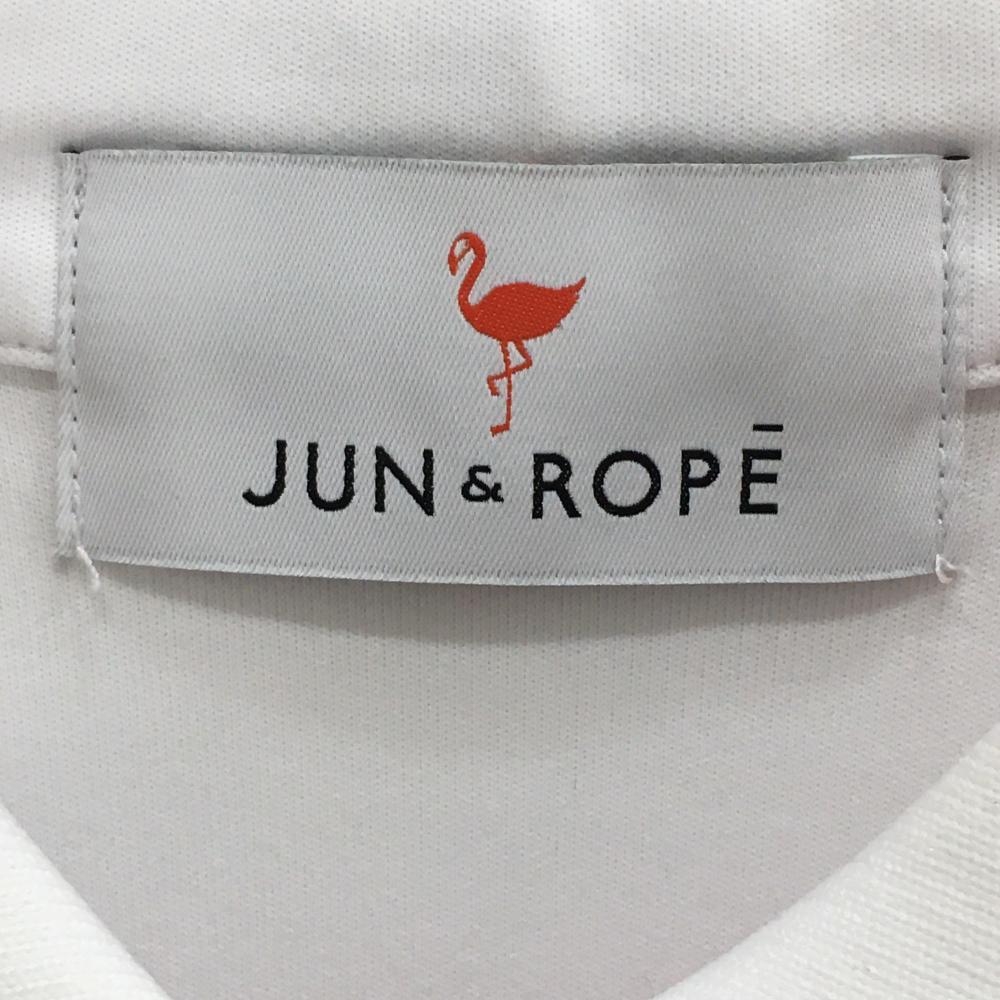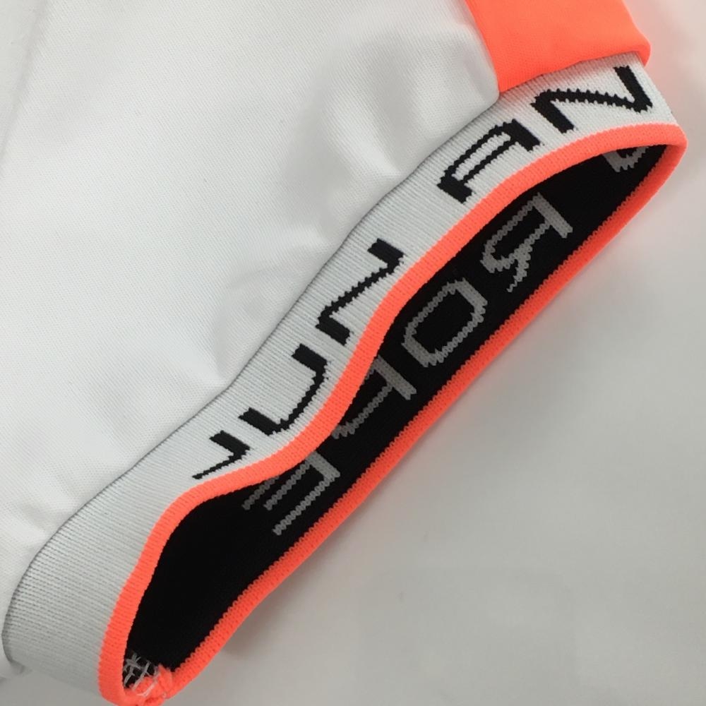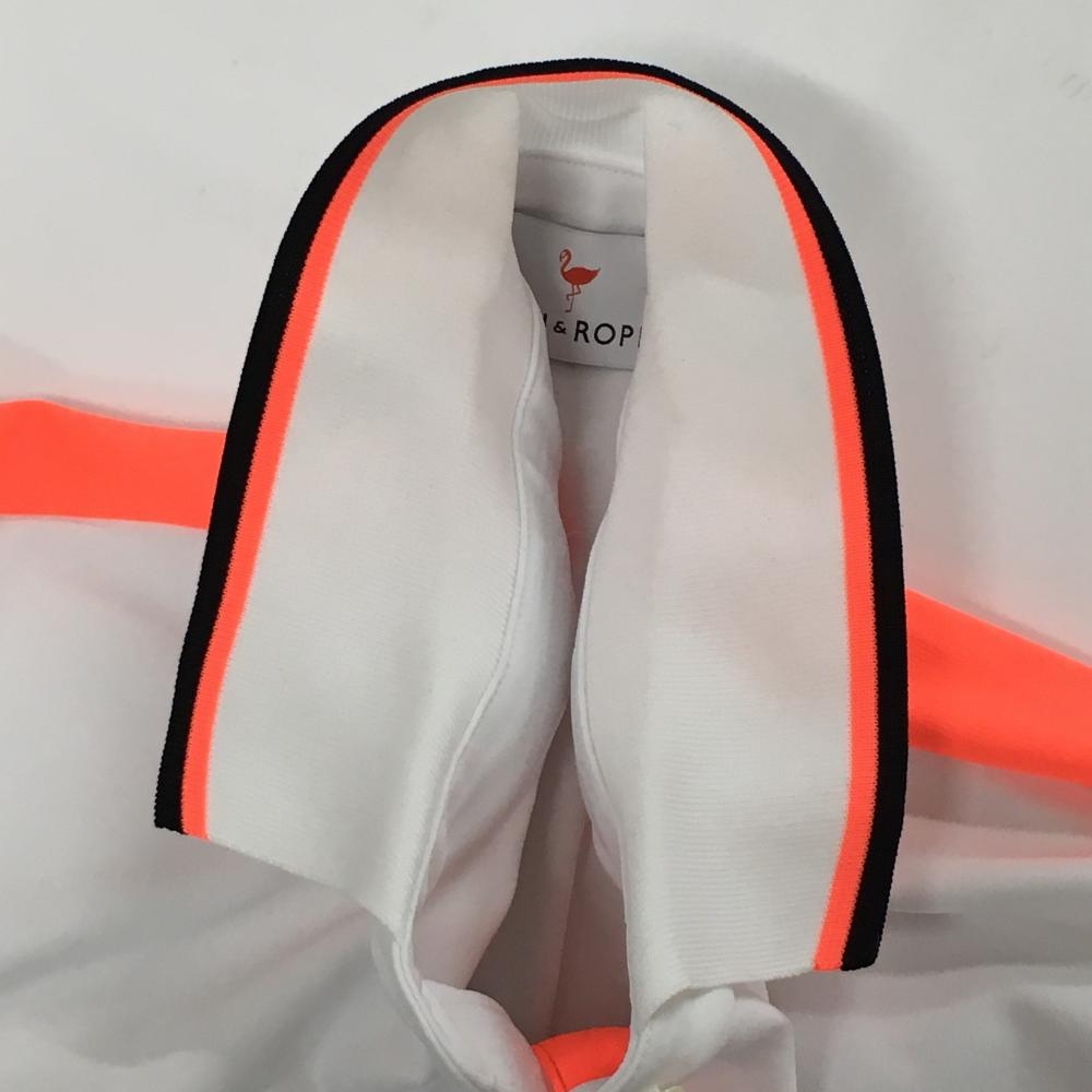 【美品】ジュンアンドロペ 半袖ポロシャツ 白×蛍光オレンジ系 袖口ロゴ 襟縁ライン レディース S ゴルフウェア JUN&ROPE