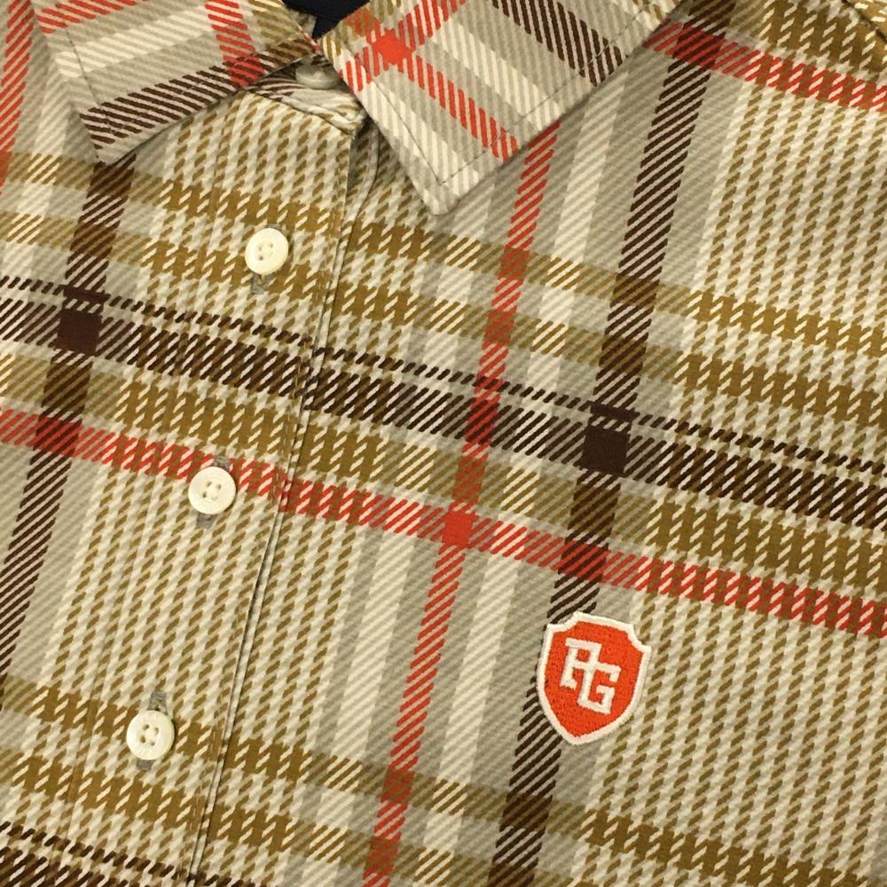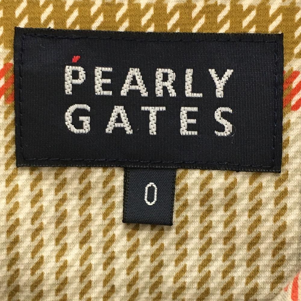 【超美品】パーリーゲイツ 長袖ポロシャツ ブラウン×オレンジレッド チェック レディース 0(S) ゴルフウェア PEARLY GATES