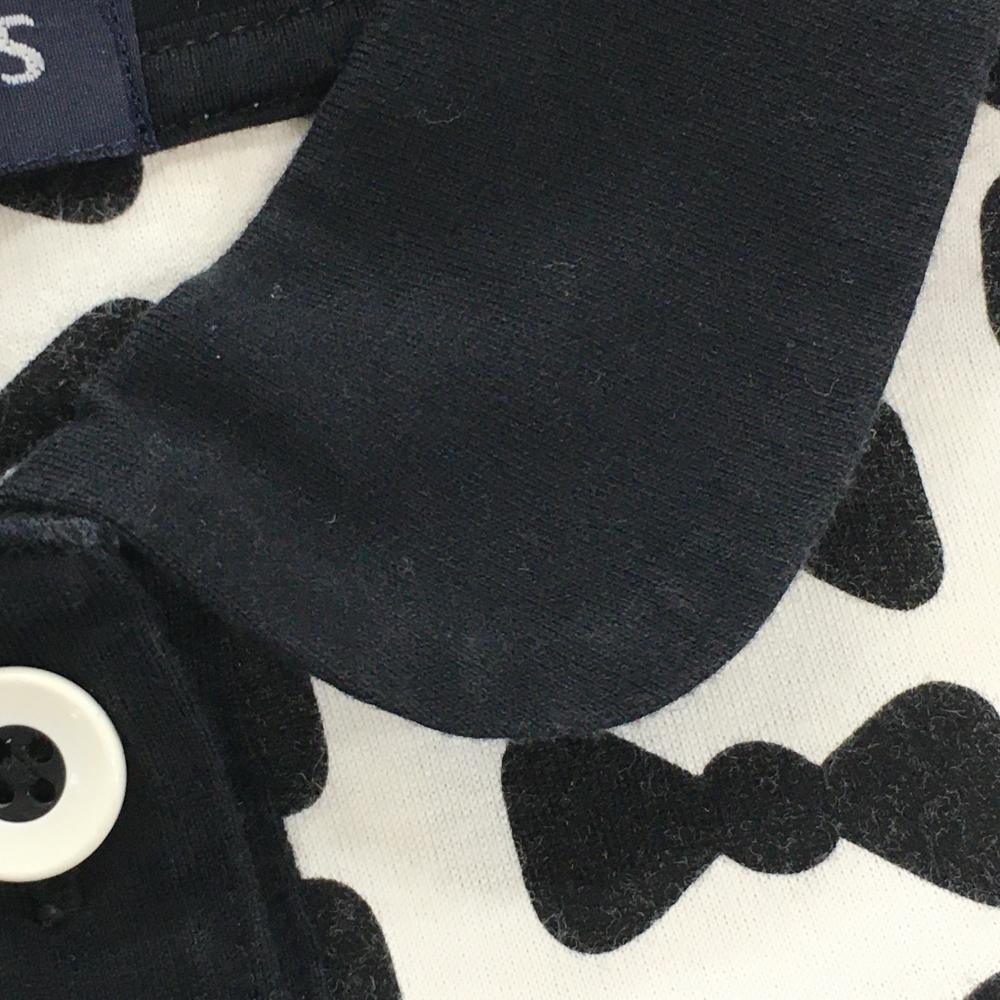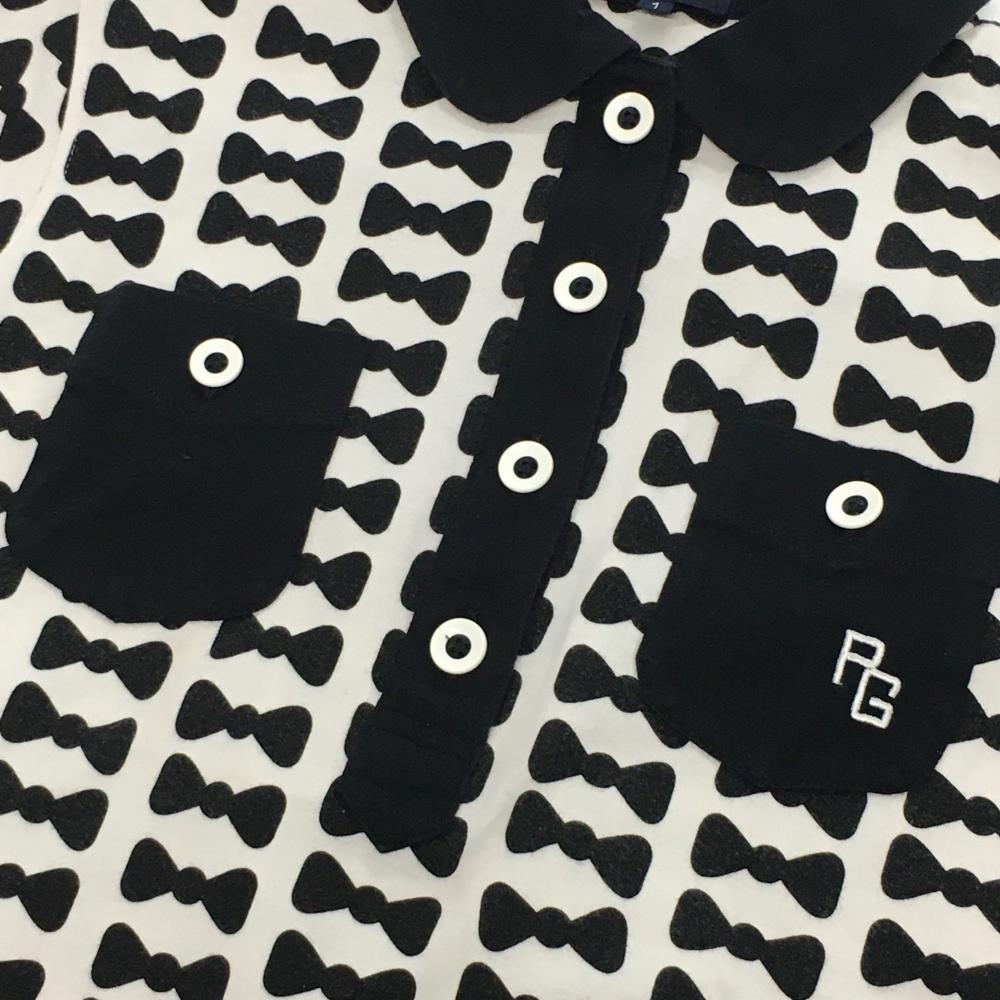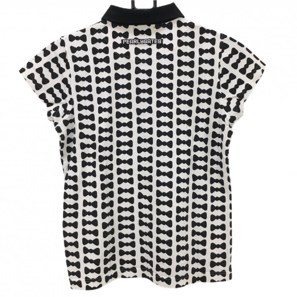 パーリーゲイツ 半袖ポロシャツ 白×黒 リボン柄 レディース 1(M) ゴルフウェア PEARLY GATES