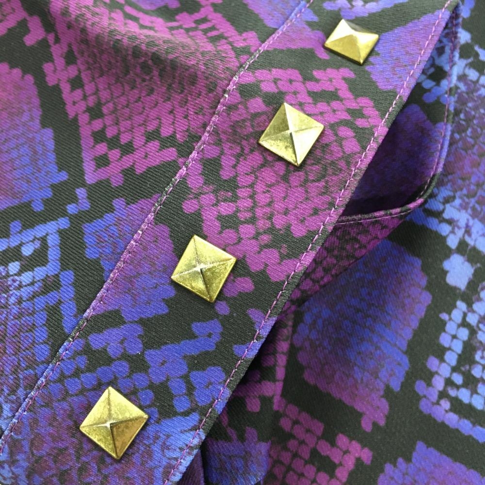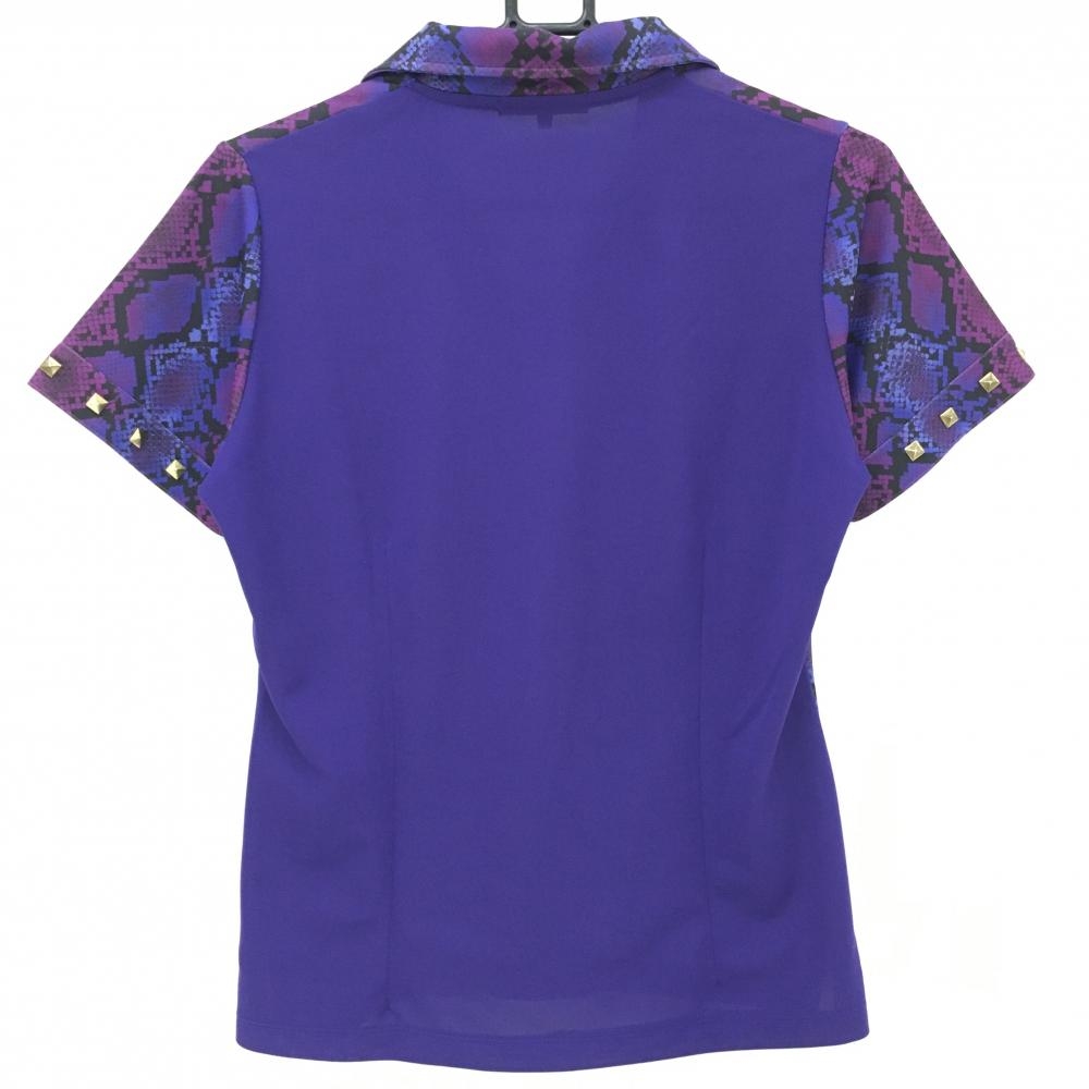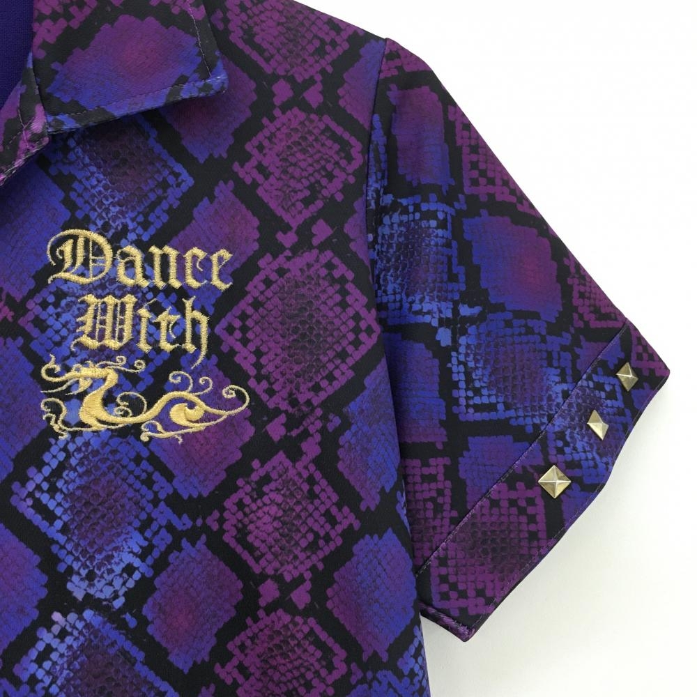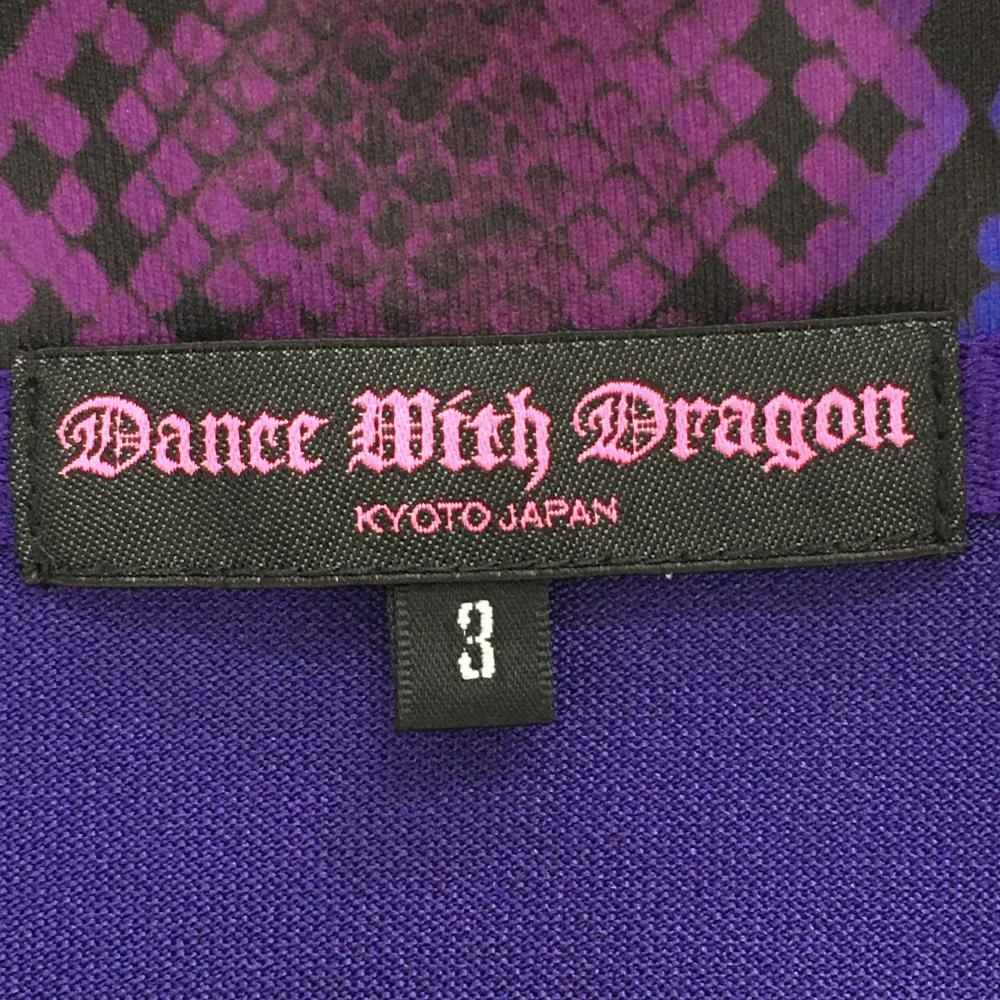 【美品】ダンスウィズドラゴン 半袖スキッパーシャツ パープル×黒 前身頃・袖パイソン柄 レディース 3(L) ゴルフウェア Dance With Dragon