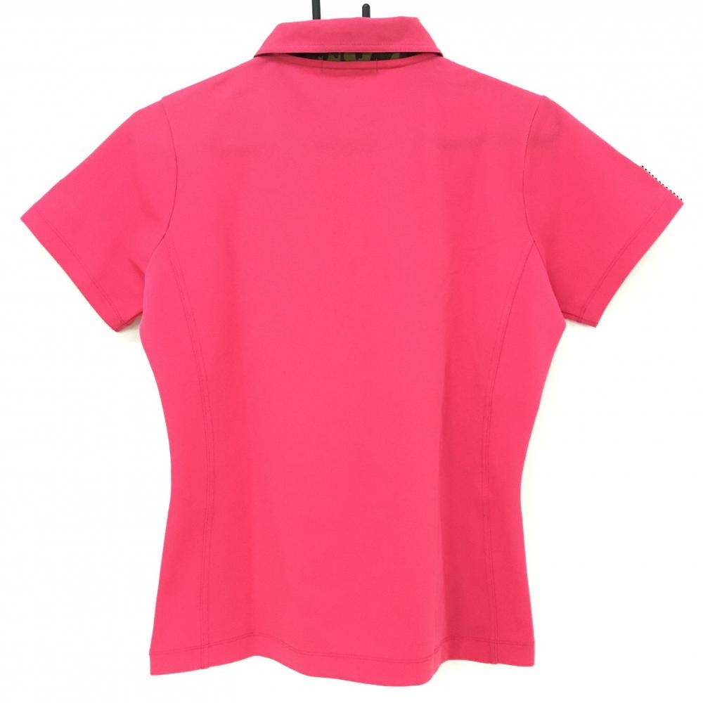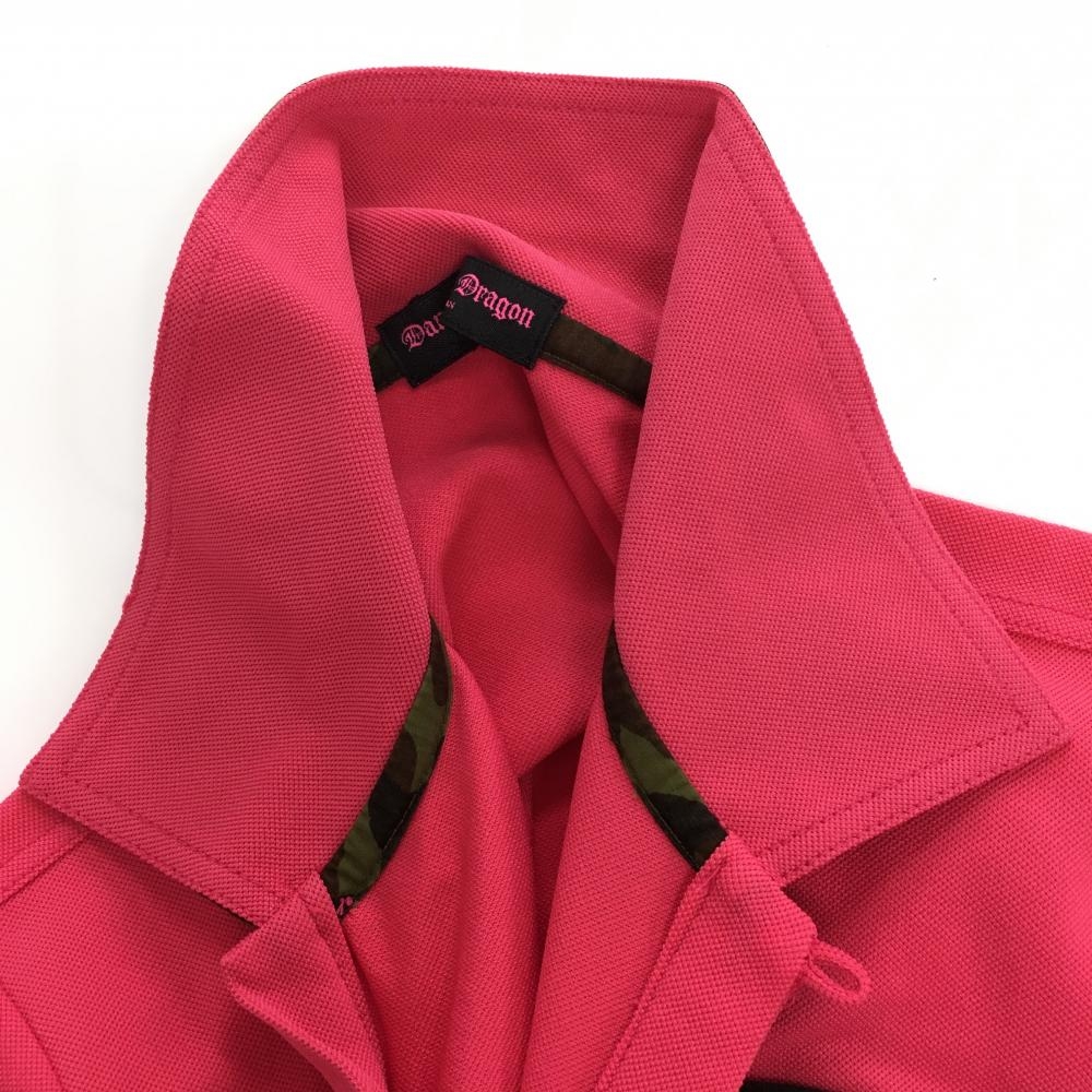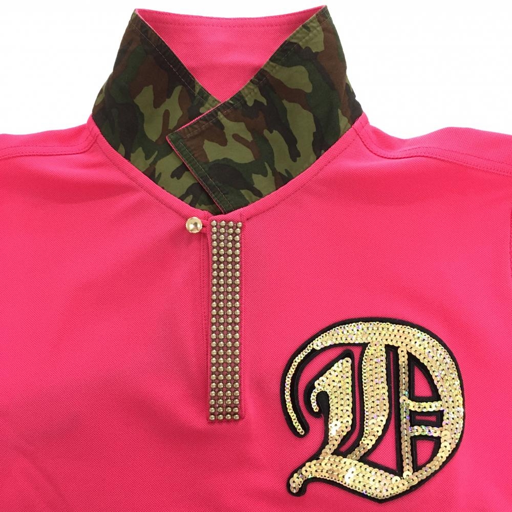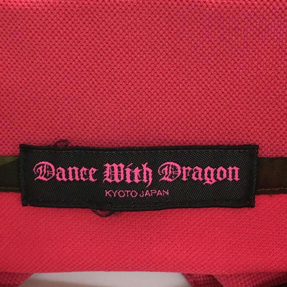 【美品】ダンスウィズドラゴン 半袖ポロシャツ ピンク×ゴールド スパンコールロゴ レディース 3(L) ゴルフウェア Dance With Dragon