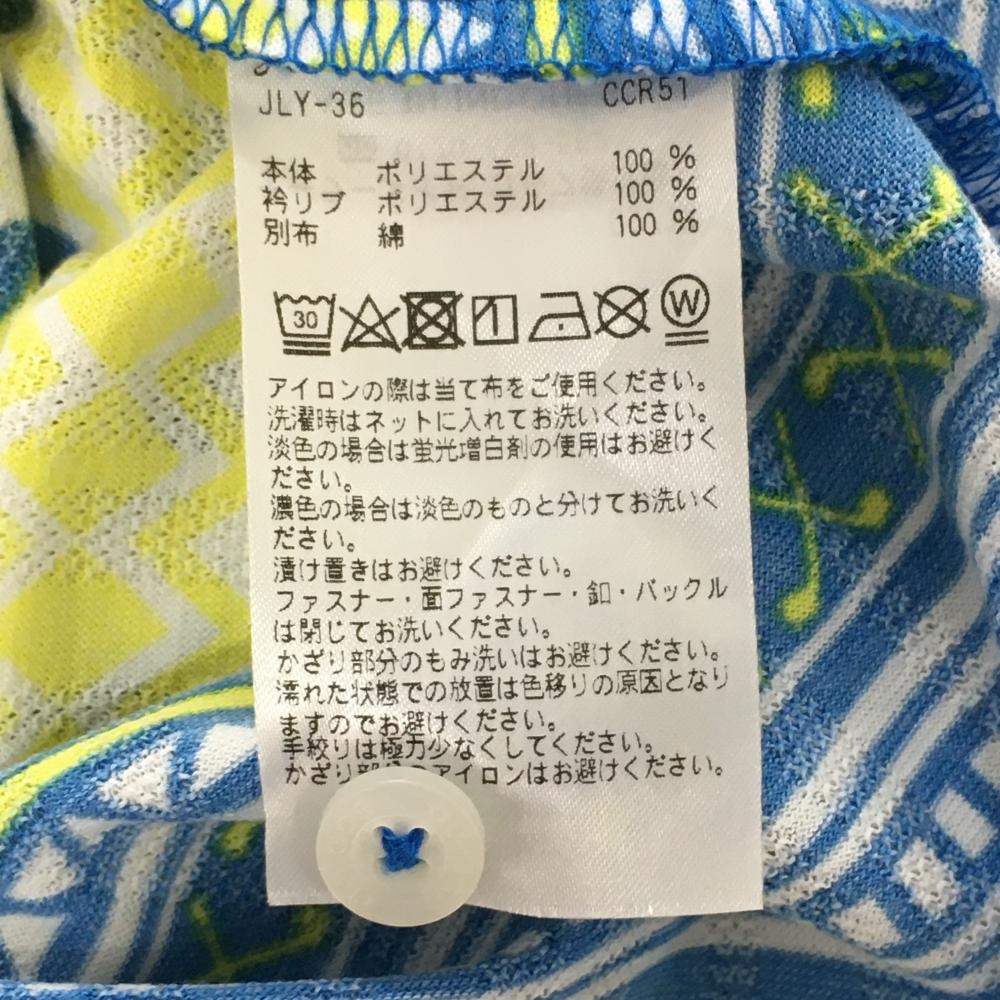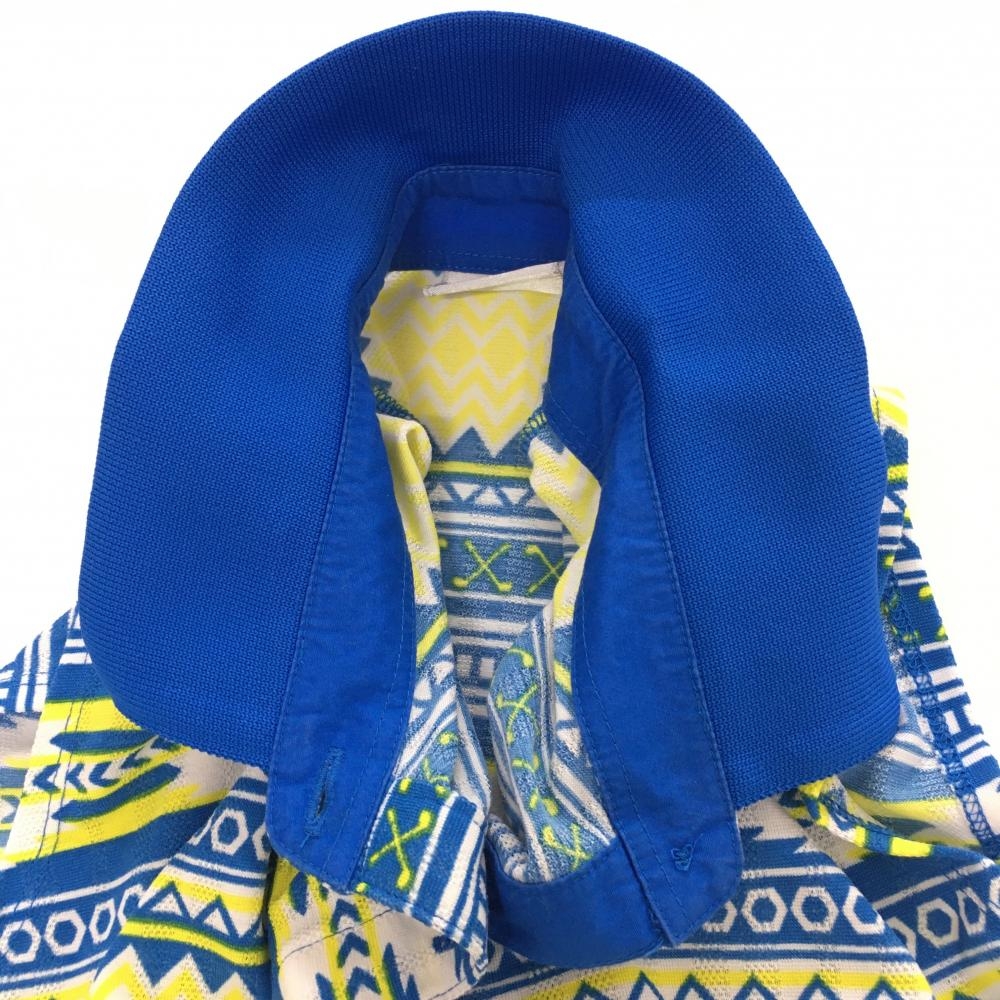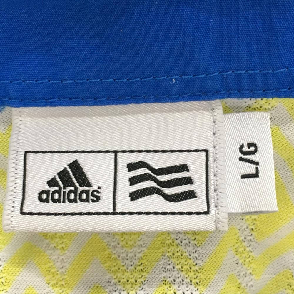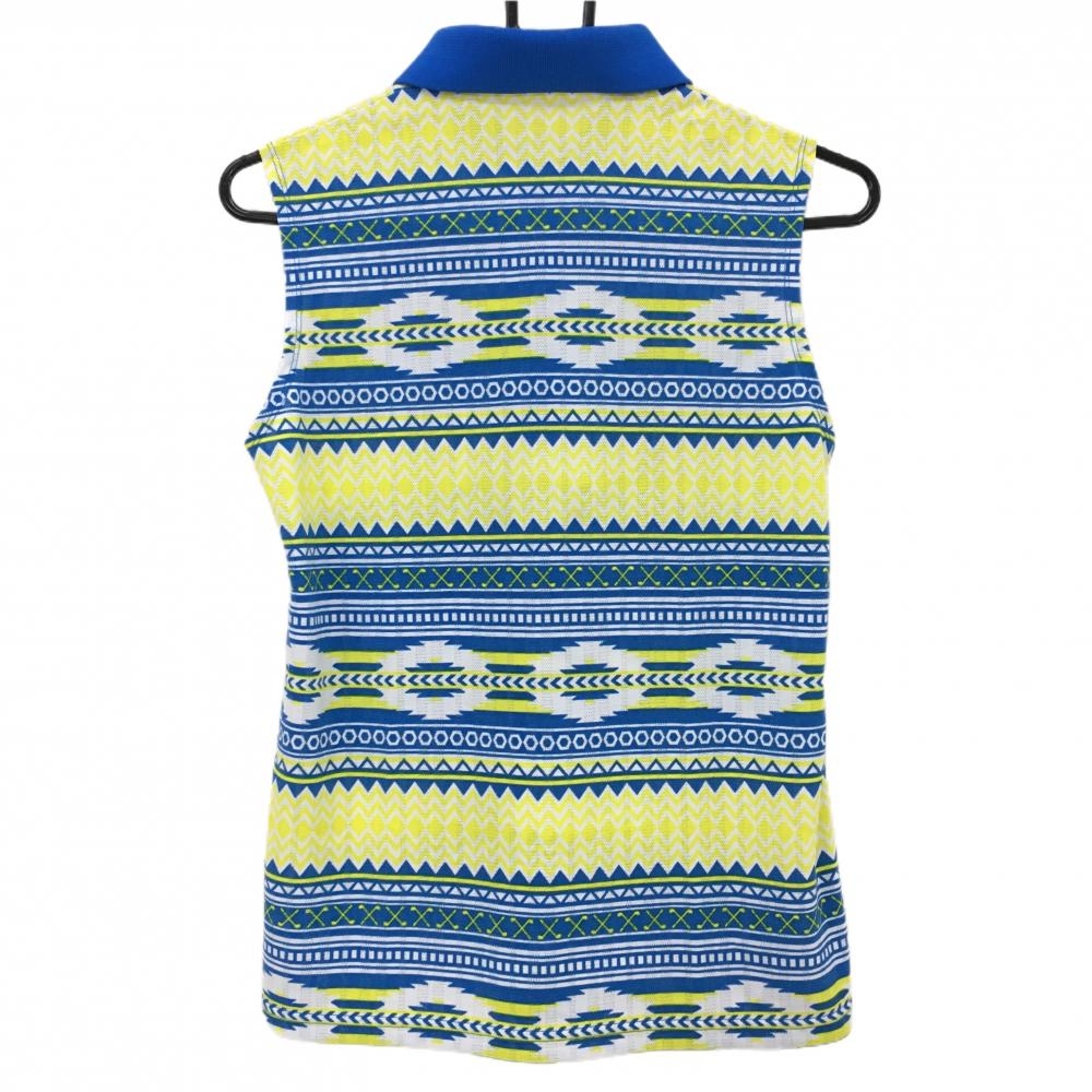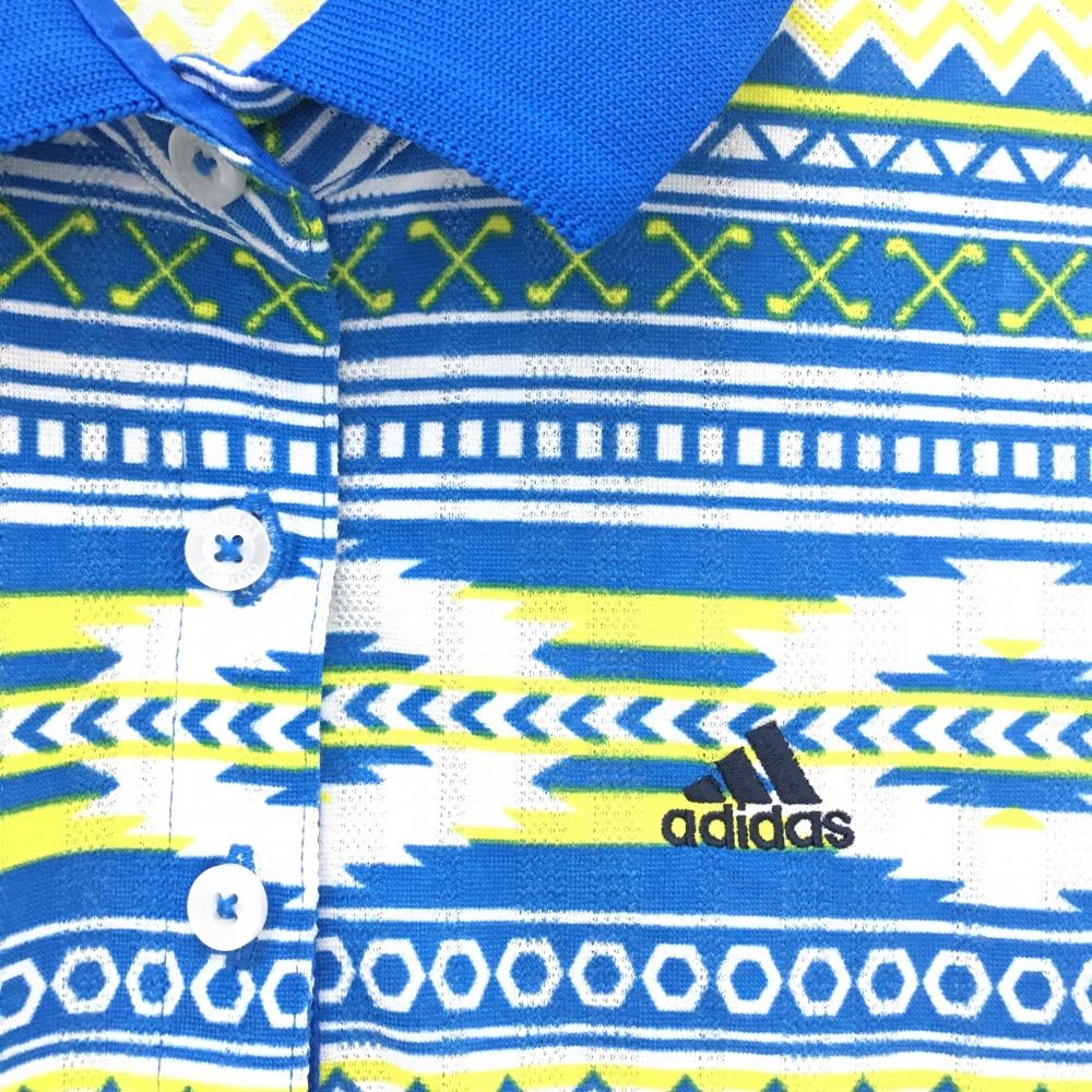 アディダス ノースリーブポロシャツ ブルー×イエロー 総柄 ロゴ刺しゅう レディース L/G ゴルフウェア adidas