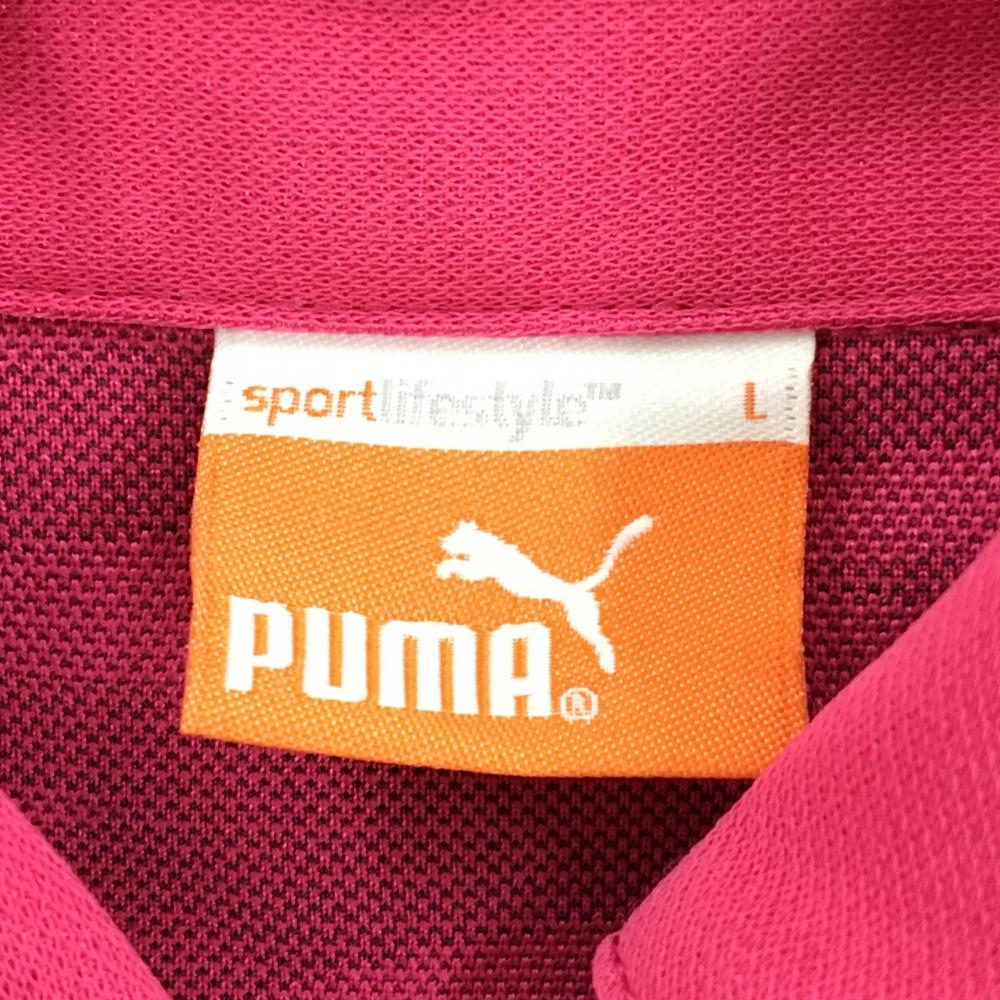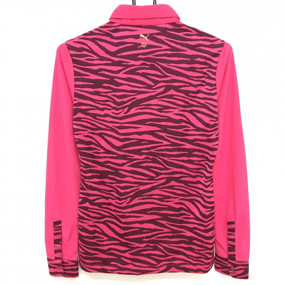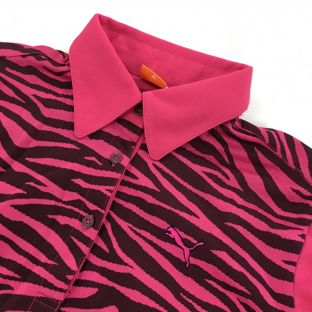 【超美品】プーマ 長袖ポロシャツ ピンク×黒 ゼブラ柄 ロゴ刺しゅう レディース L ゴルフウェア PUMA