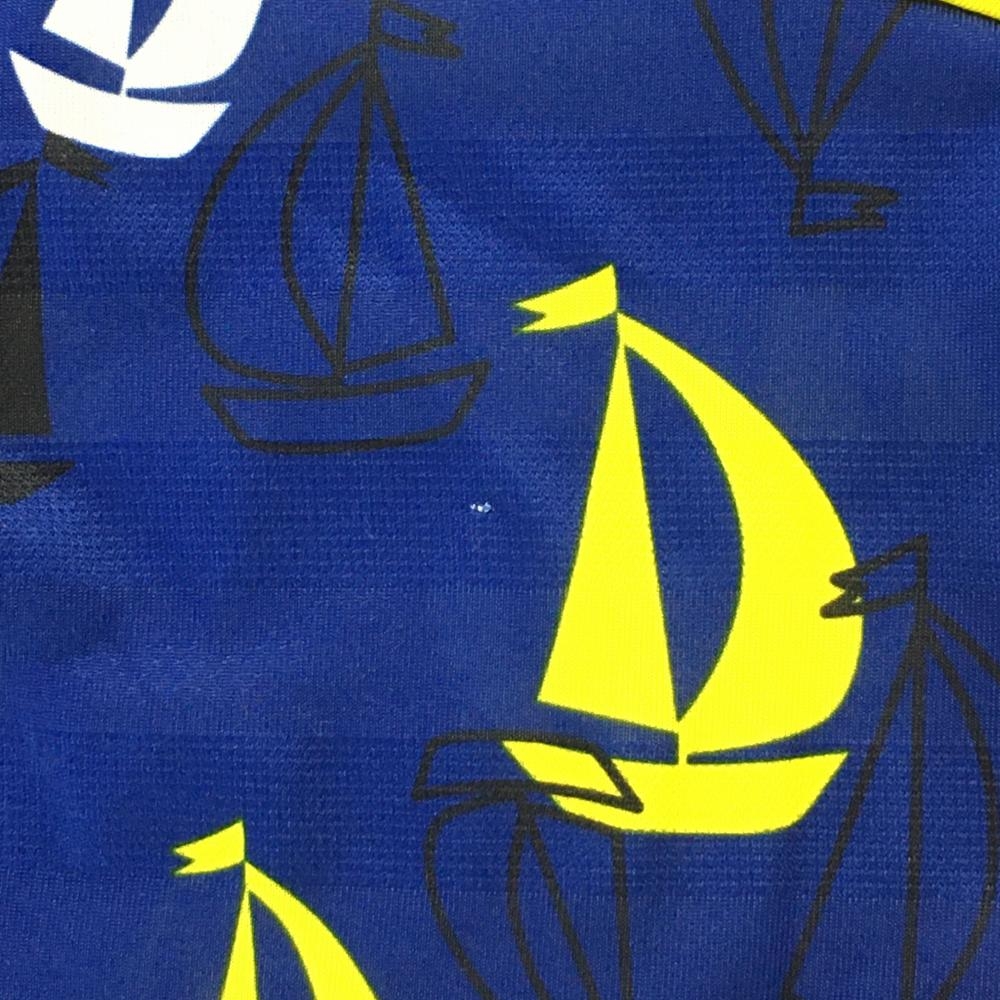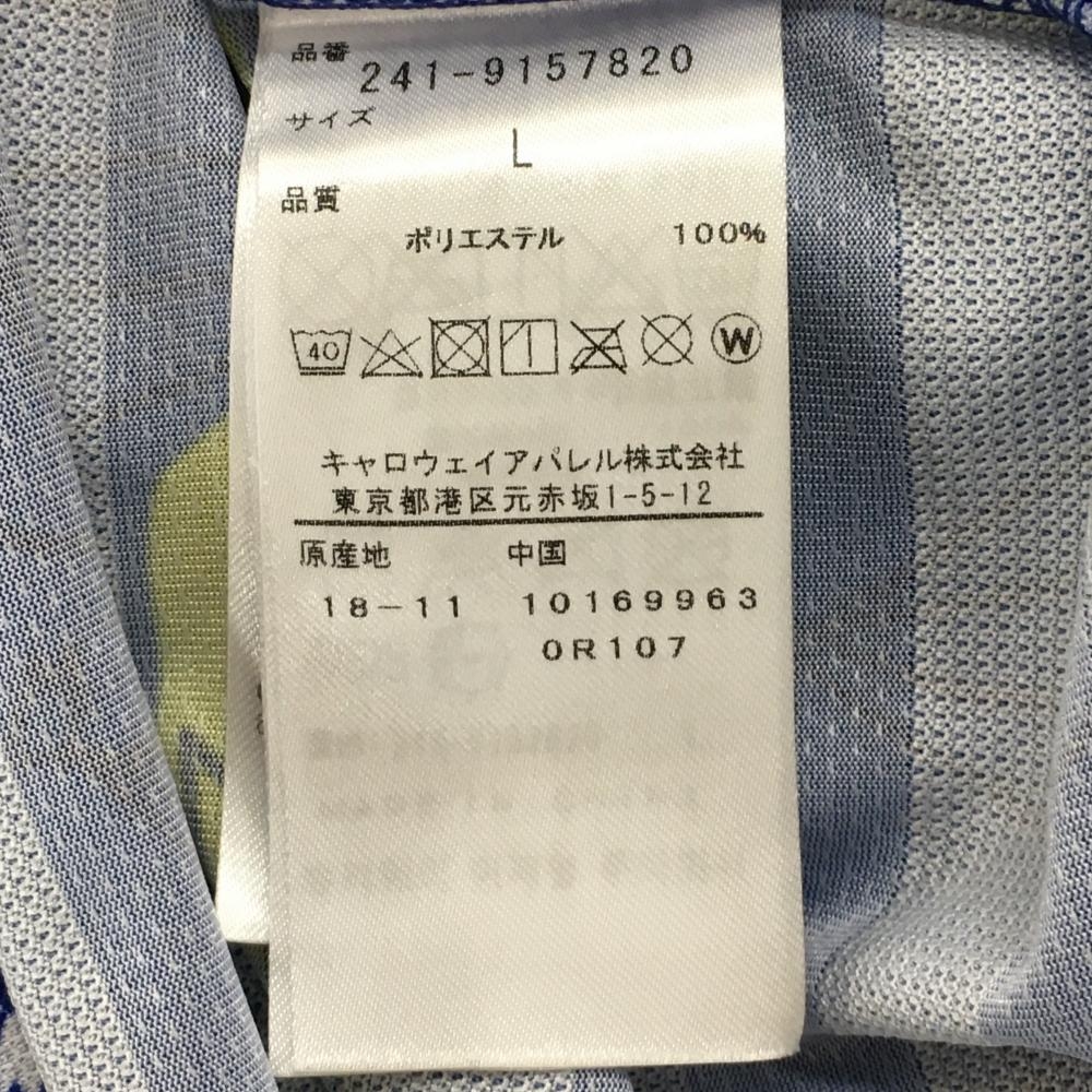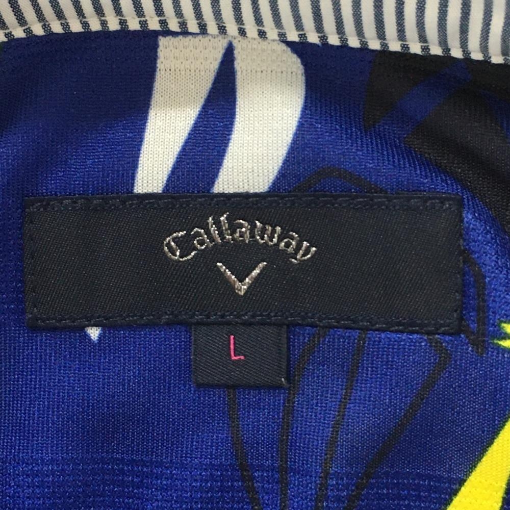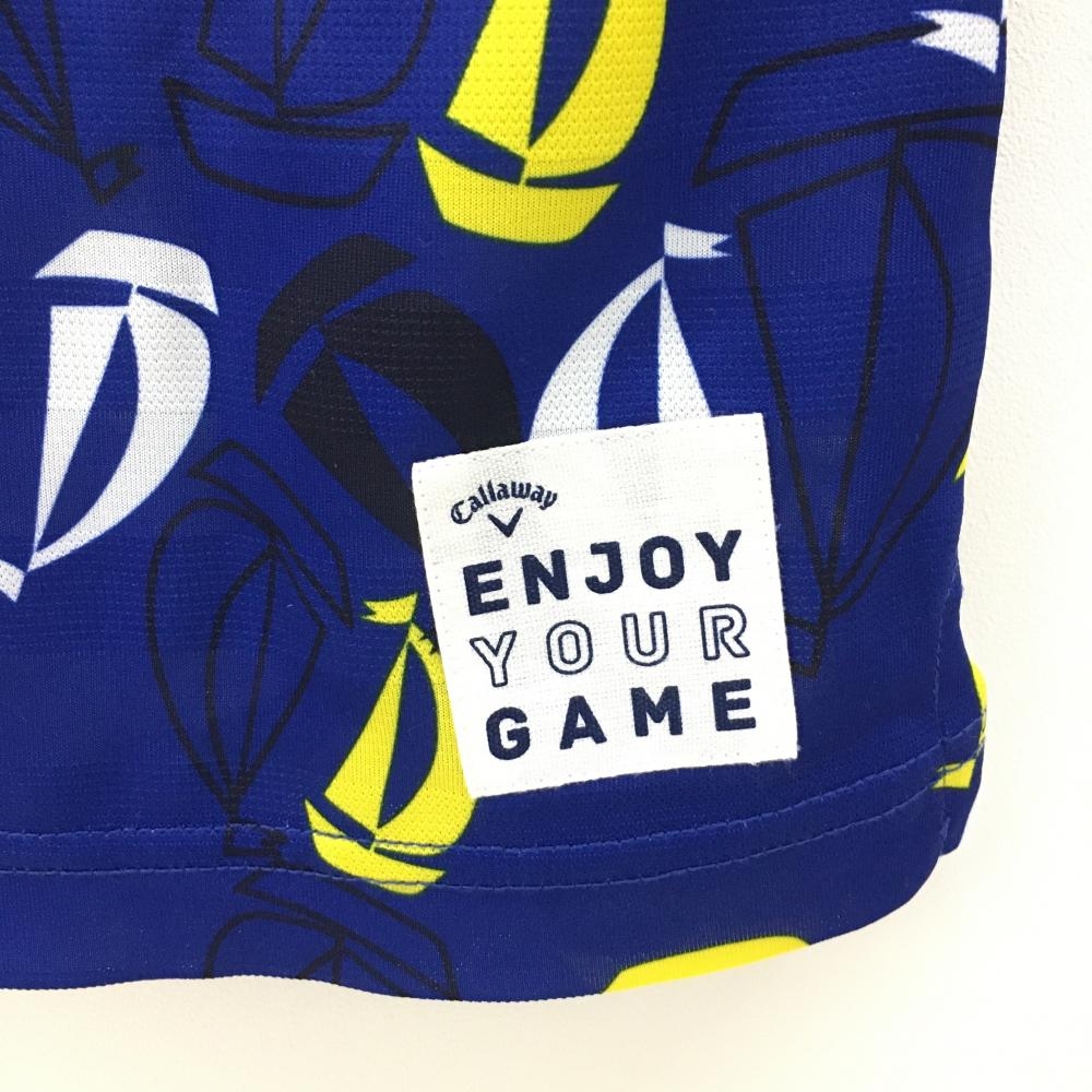 【美品】キャロウェイ 半袖ポロシャツ ブルー×イエロー ヨット柄 ボーダー織生地 レディース L ゴルフウェア Callaway